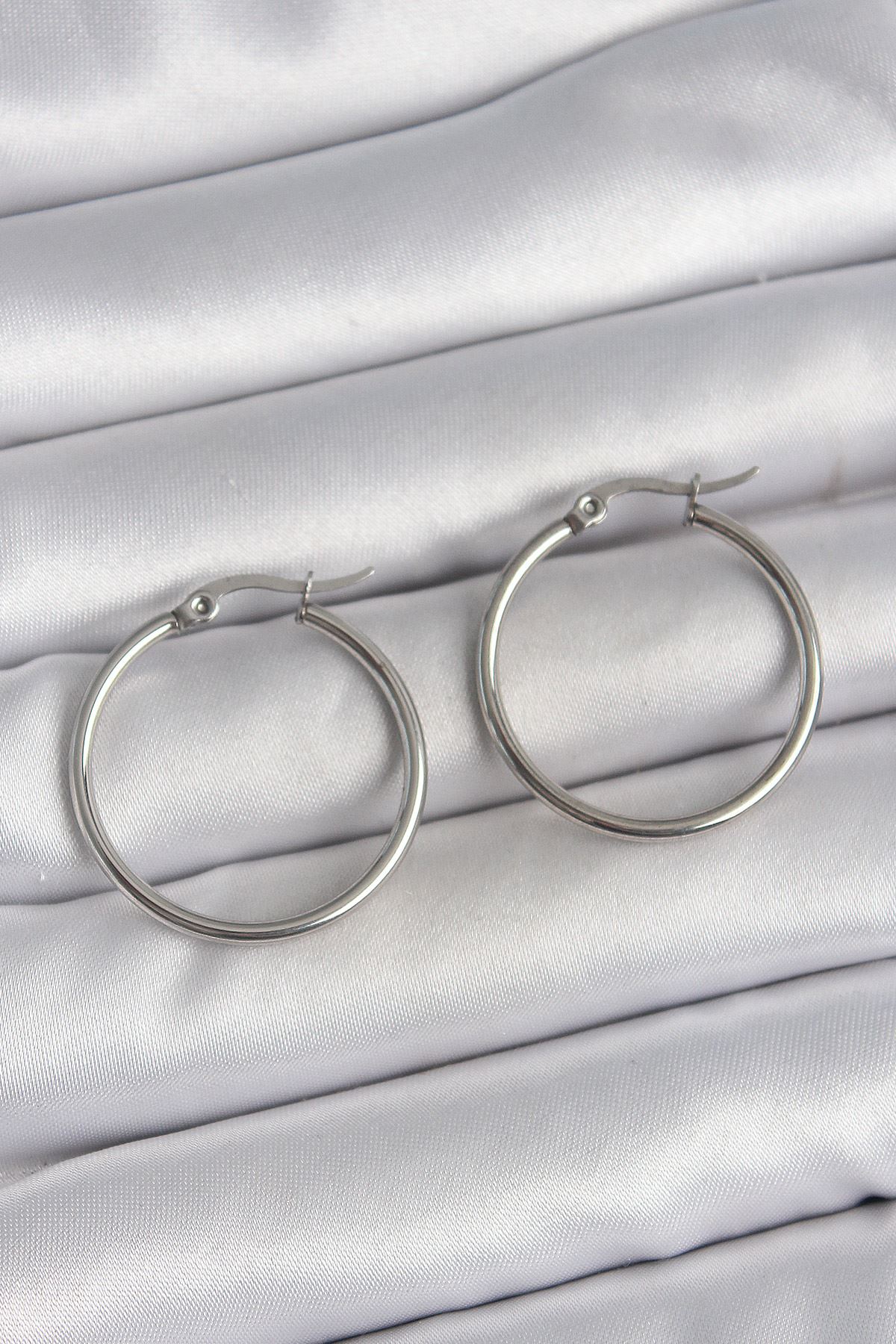 316 Çelik Gümüş Renk 27 mm Halka Model Kadın Küpe - TJ-BKP10514