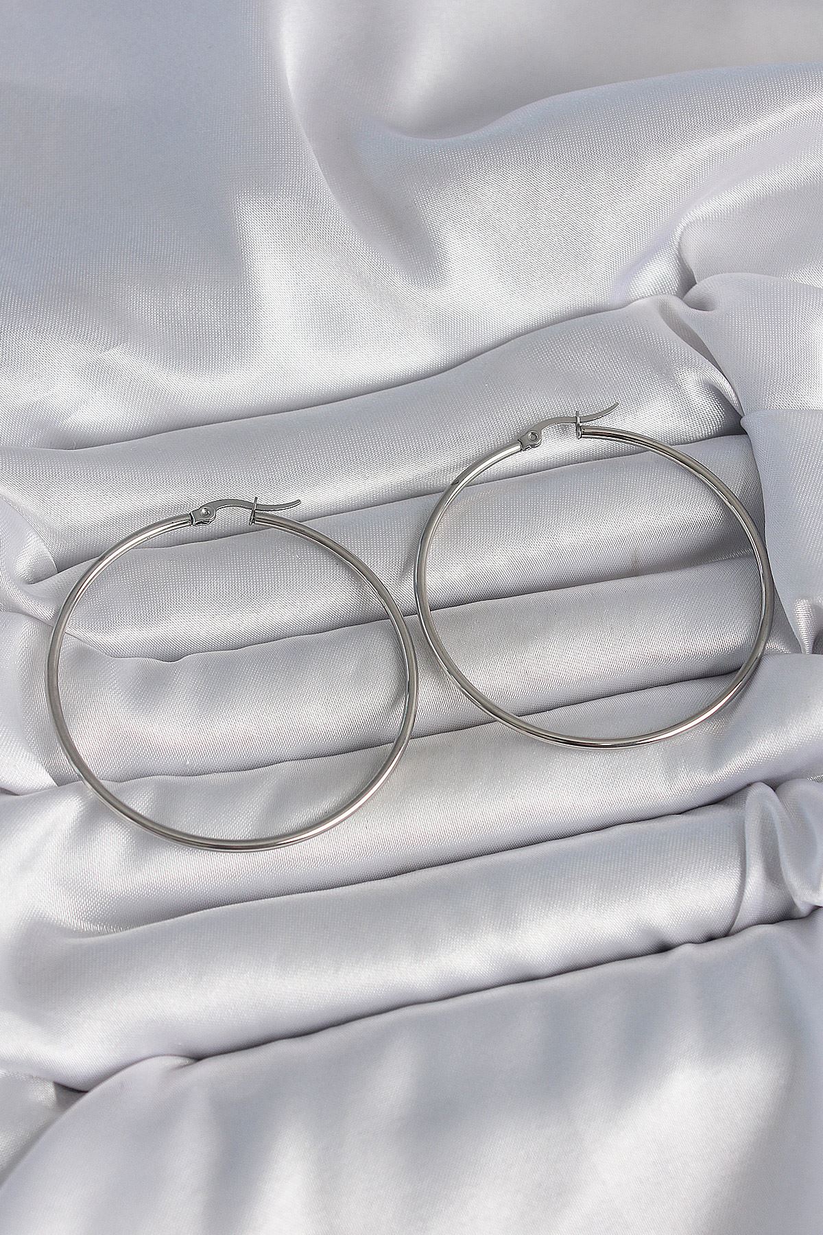 316 Çelik Gümüş Renk 53 mm Halka Model Kadın Küpe - TJ-BKP10517
