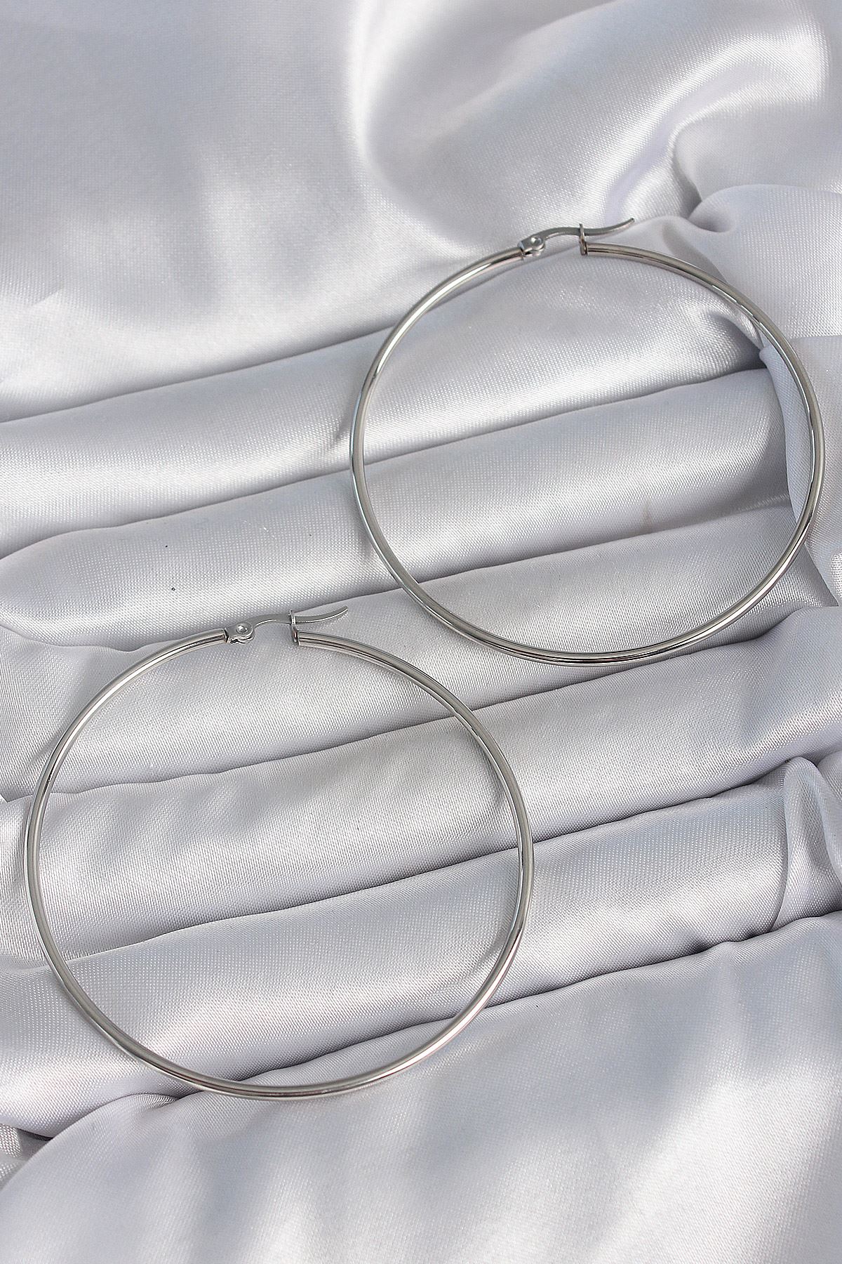 316 Çelik Gümüş Renk 63 mm Halka Model Kadın Küpe - TJ-BKP10518