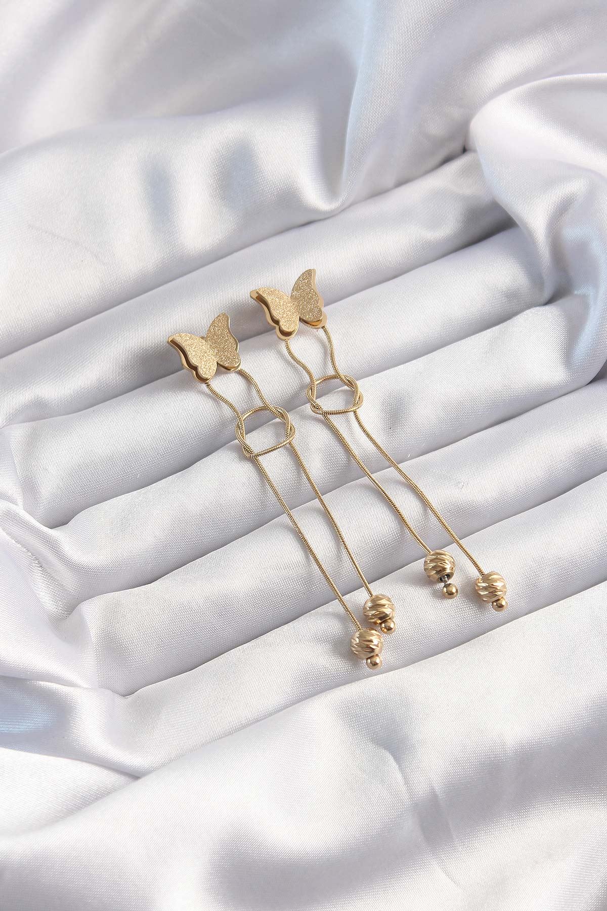 316L Çelik Altın Renk Sallantılı Düğüm Model Kelebek Küpe - TJ-BKP9496