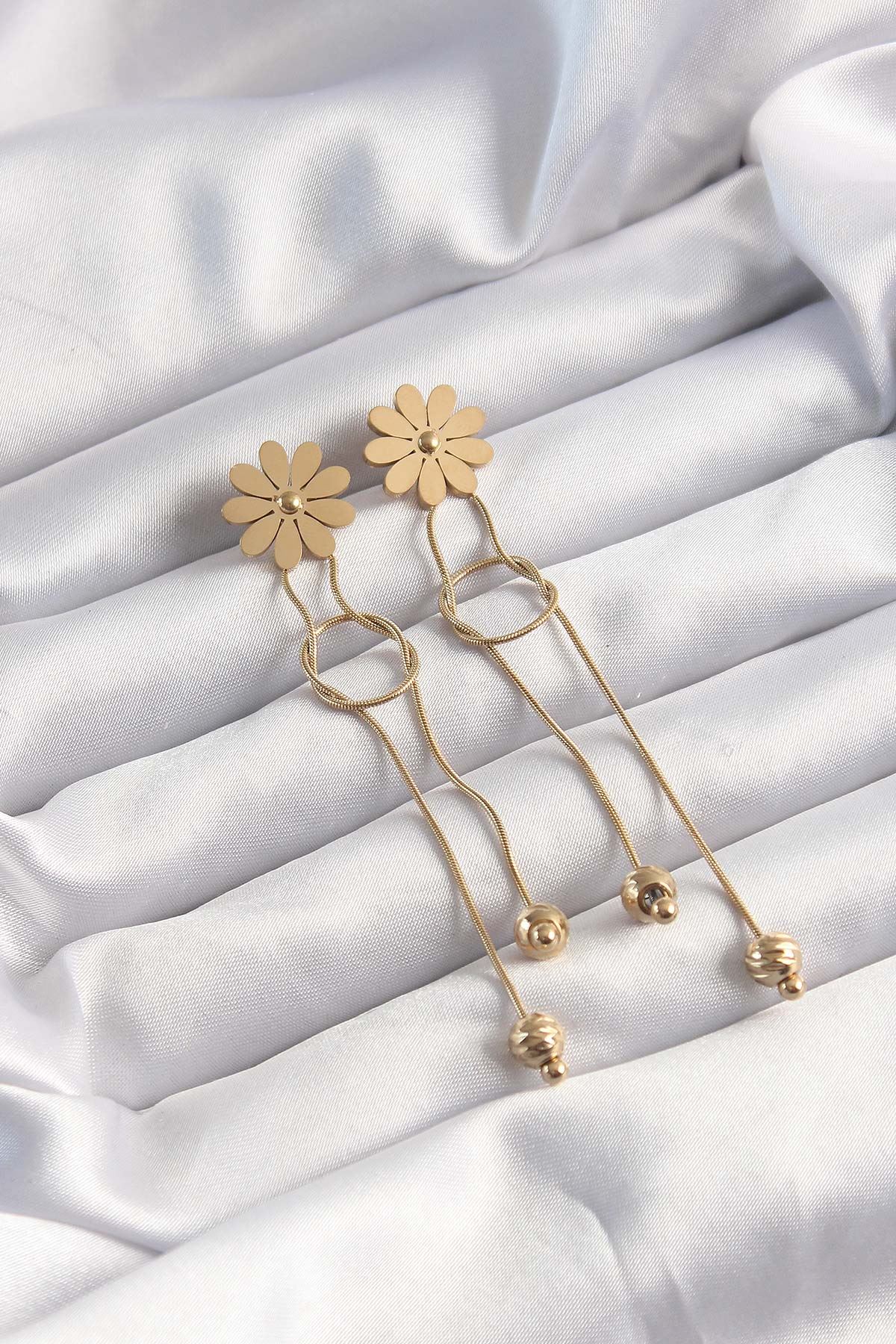 316L Çelik Altın Renk Sallantılı Düğüm Model Papatya Küpe - TJ-BKP9497