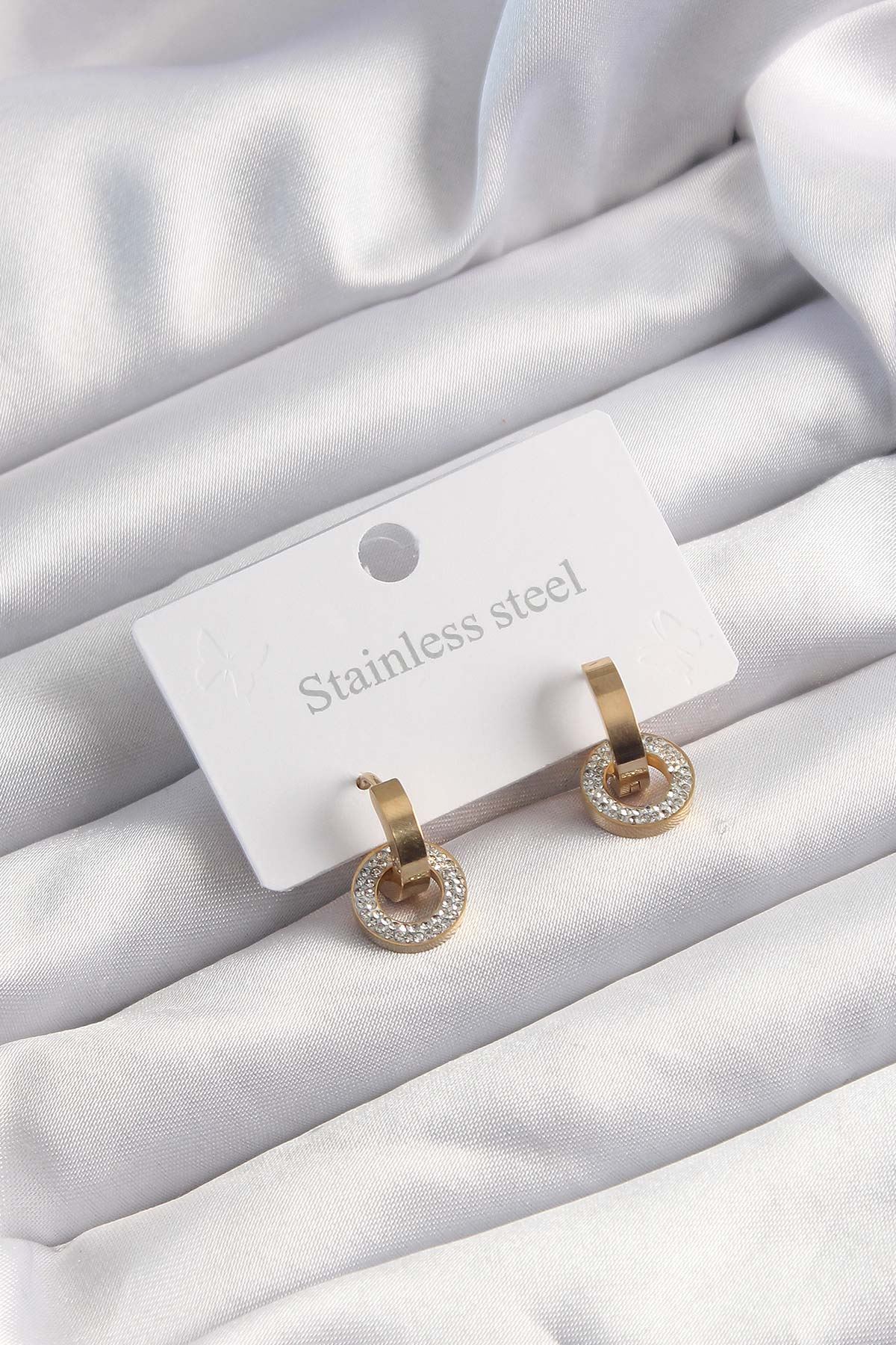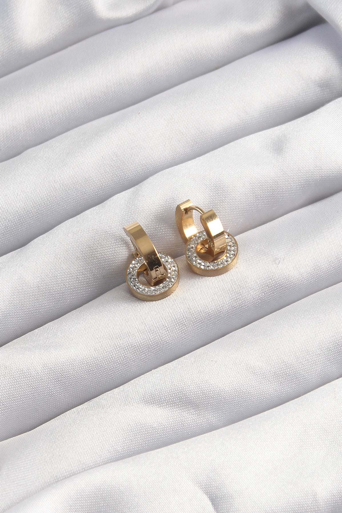 316L Çelik Altın Renk Zirkon Taşlı Halka Model Küpe - TJ-BKP9499