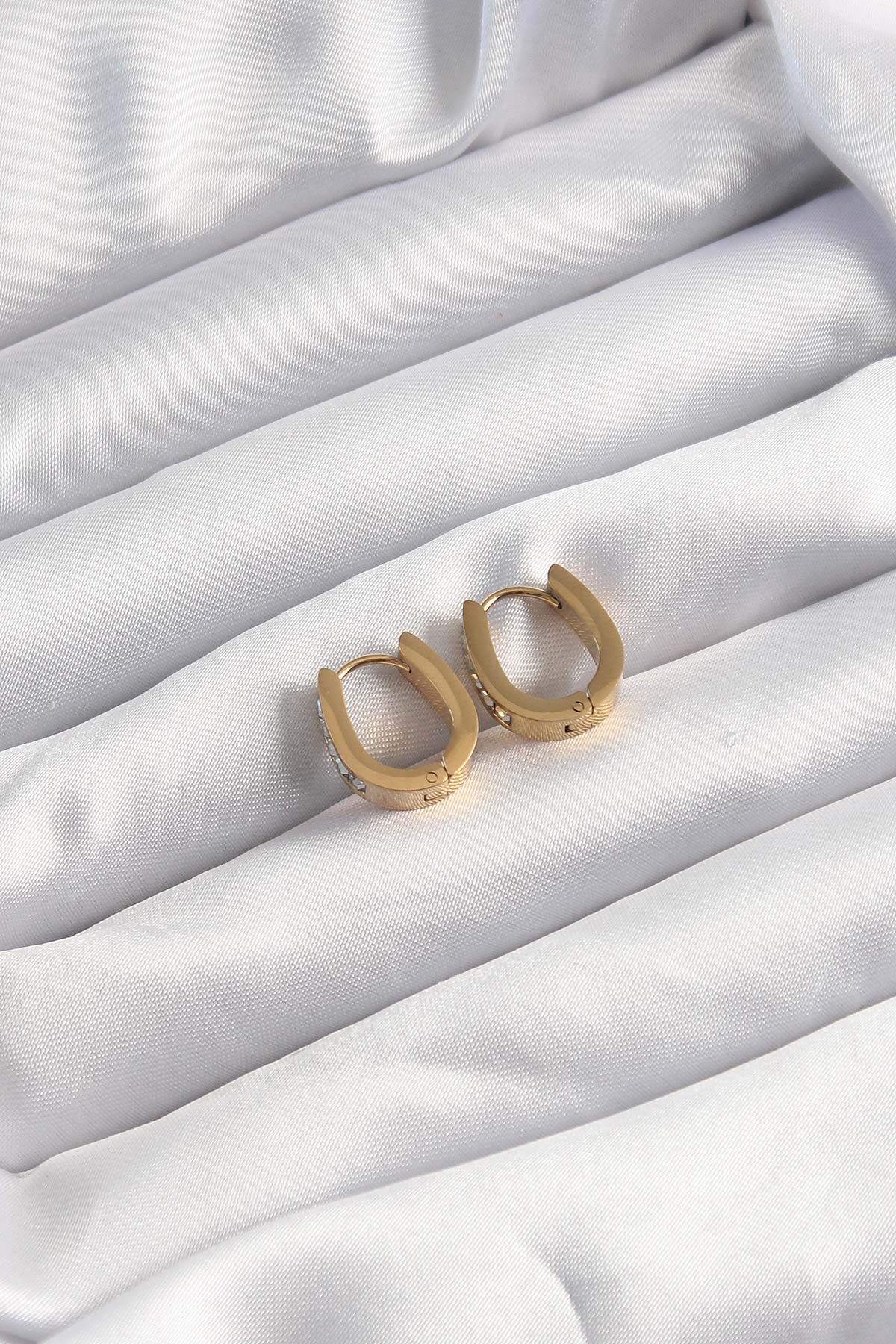 316L Çelik Altın Renk Zirkon Taşlı Halka Model Küpe - TJ-BKP9500