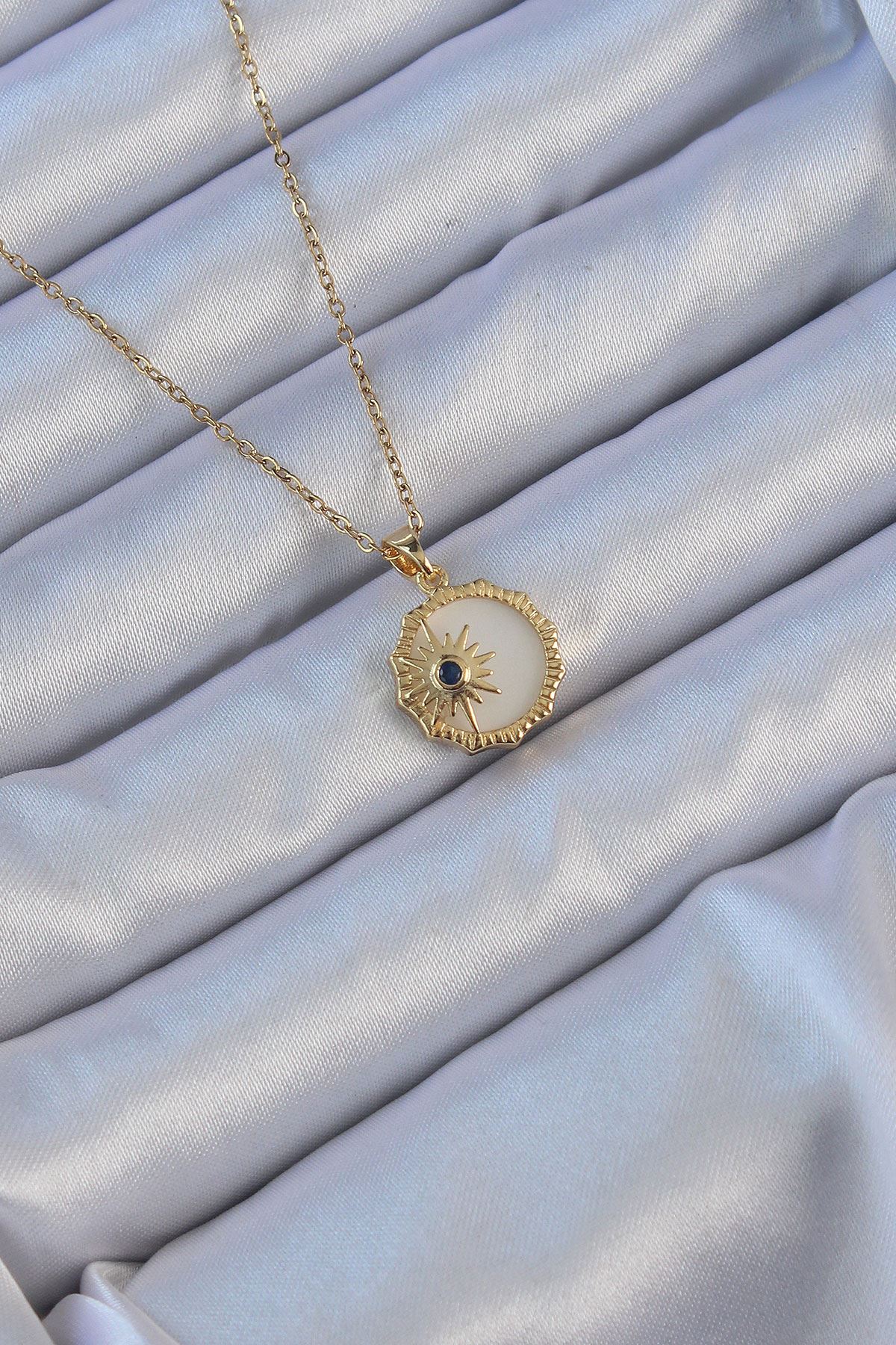 316L Çelik Altın Renk Zirkon Taşlı Mineli Kutup Yıldızı Kolye - TJ-BKO9147