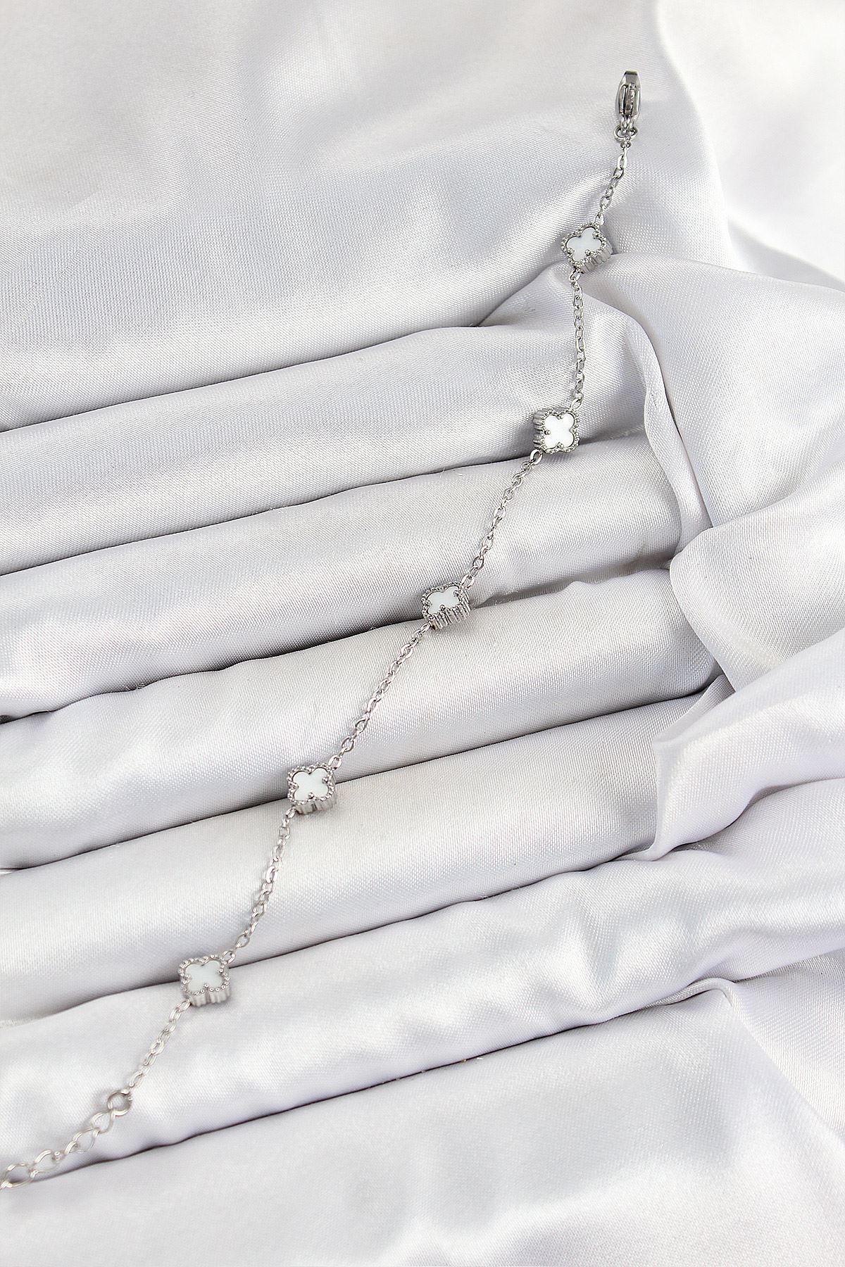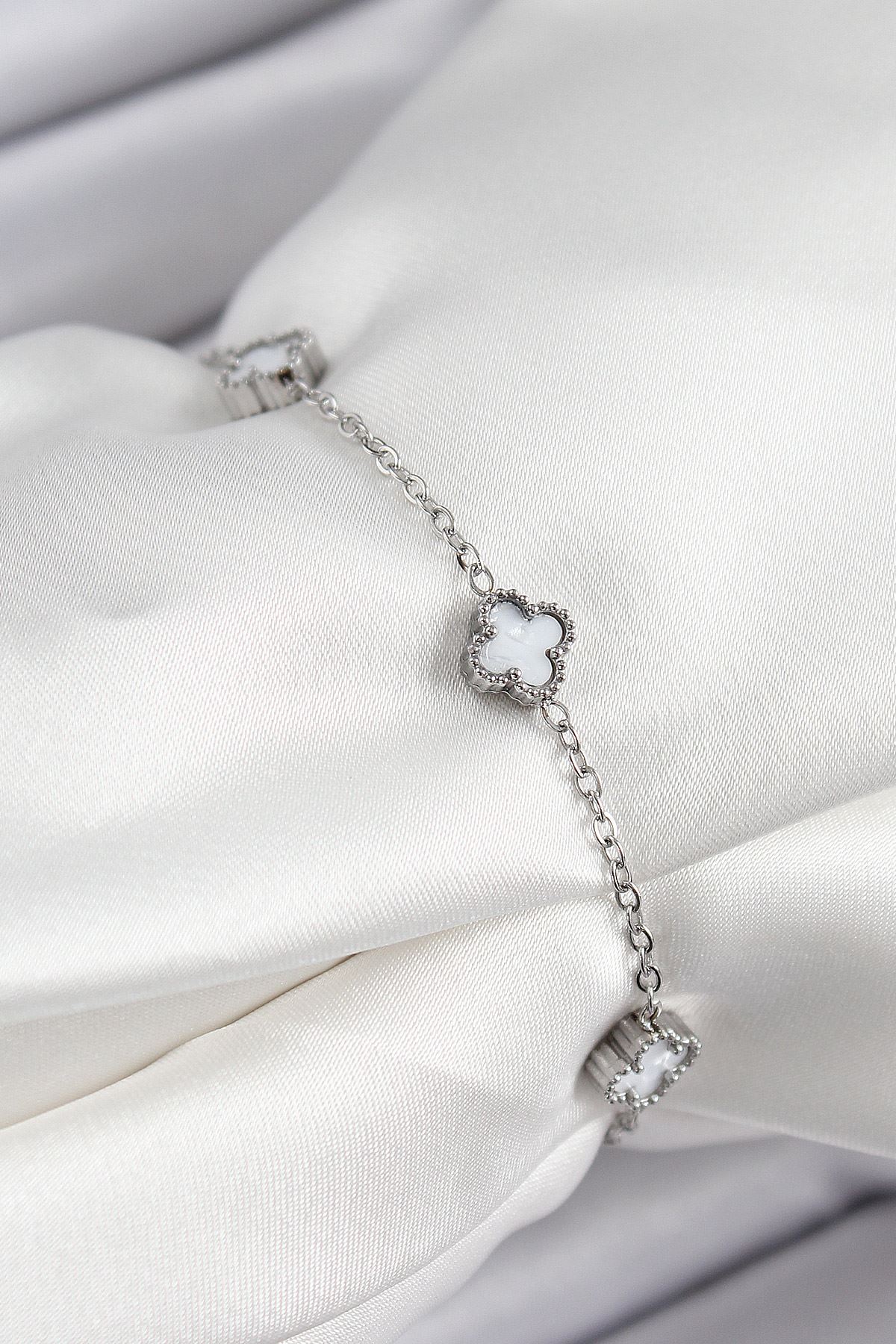 316L Çelik Beyaz Sedef Yonca Model Gümüş Renk Kadın Bileklik - TJ-BB7361