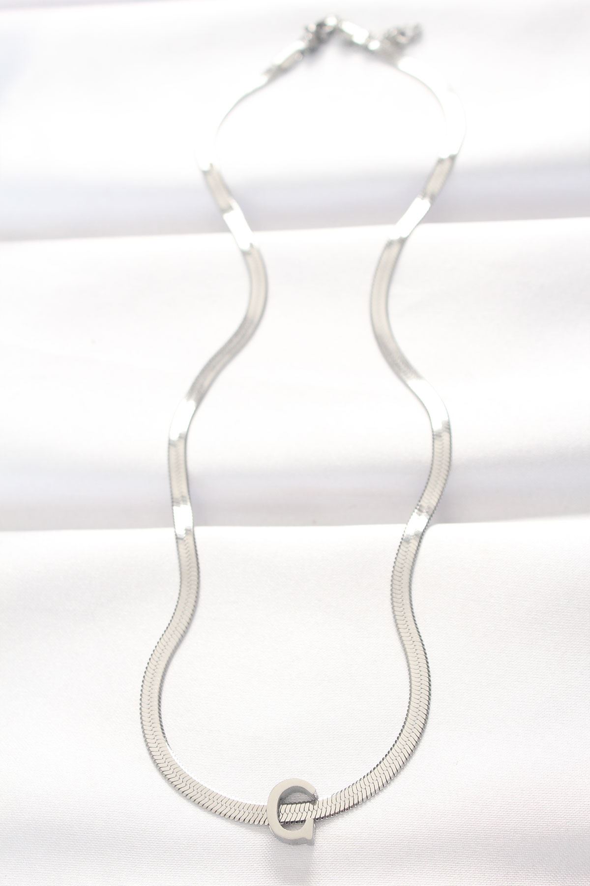 316L Çelik C Harfli Silver Renk İtalyan Zincirli Kolye - TJ-BKO8538