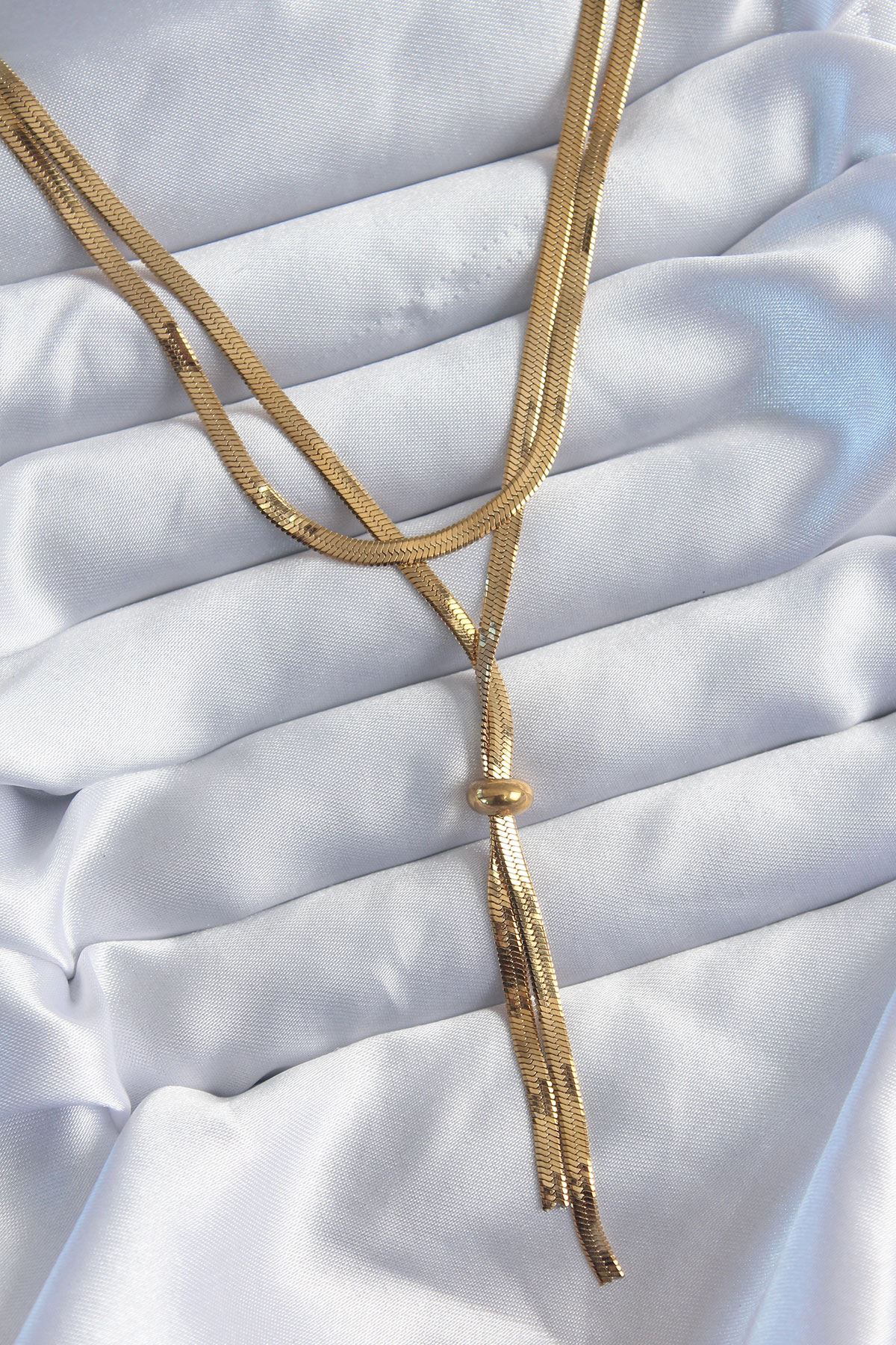 316L Çelik Gold Renk 2'li İtalyan Zincir Asansör Model Sallantı Detay Kadın Kolye - TJ-BKO8025