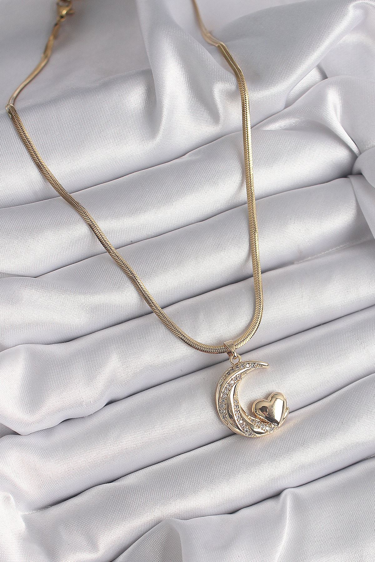 316L Çelik Gold Renk Çelik İtalyan Zincir Zirkon Taşlı Halil Figür Kalp Detay Kadın Kolye - TJ-BKO9591