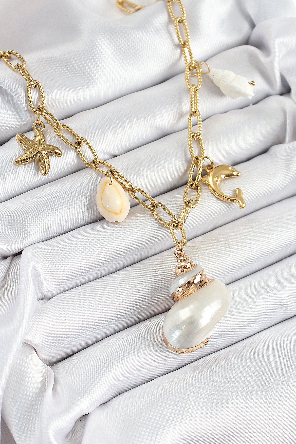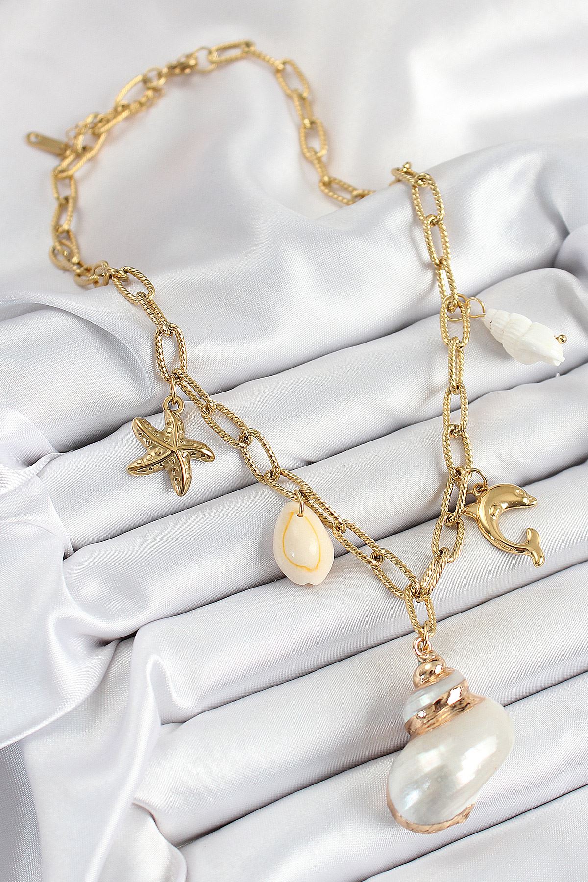 316L Çelik Gold Renk Deniz Kabuğu ve Yıldızı Konseptli Kadın Kolye - TJ-BKO10292
