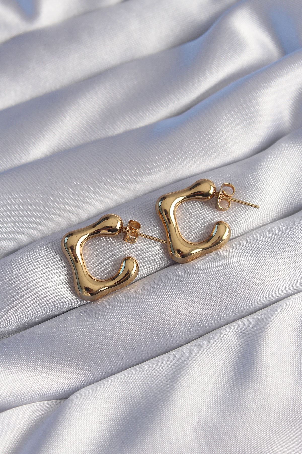 316L Çelik Gold Renk İçi Boş Bubble Kalp Küpe - TJ-BKP9051