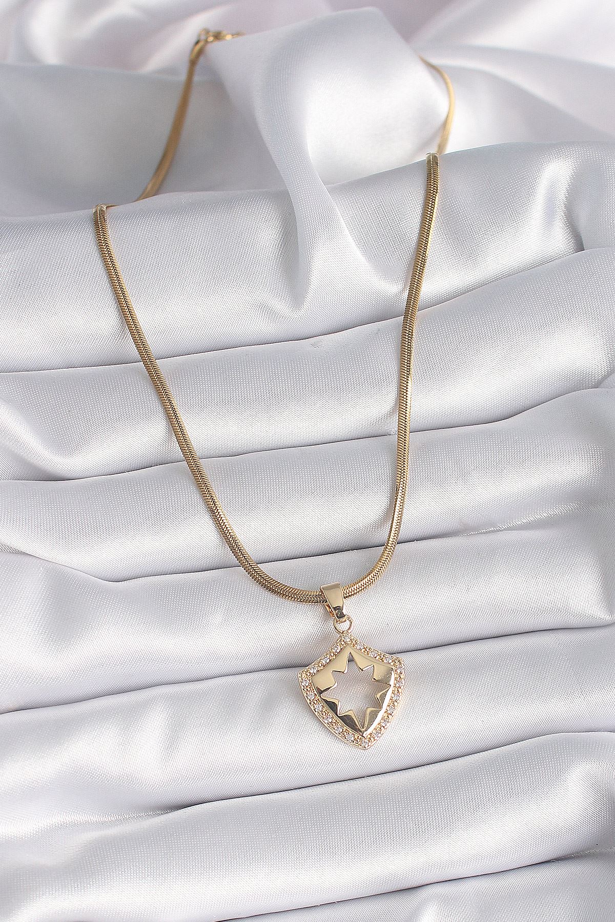 316L Çelik Gold Renk İtalyan Zincir Zirkon Taşlı Kutup Yıldız İşleme Kadın Kolye - TJ-BKO9536