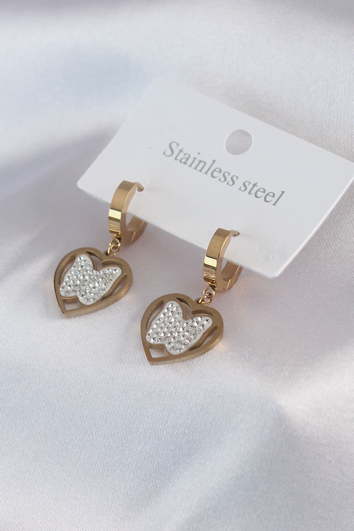 316L Çelik Gold Renk Kelebek Model Zirkon Taş Detay Kadın Küpe - TJ-BKP7482