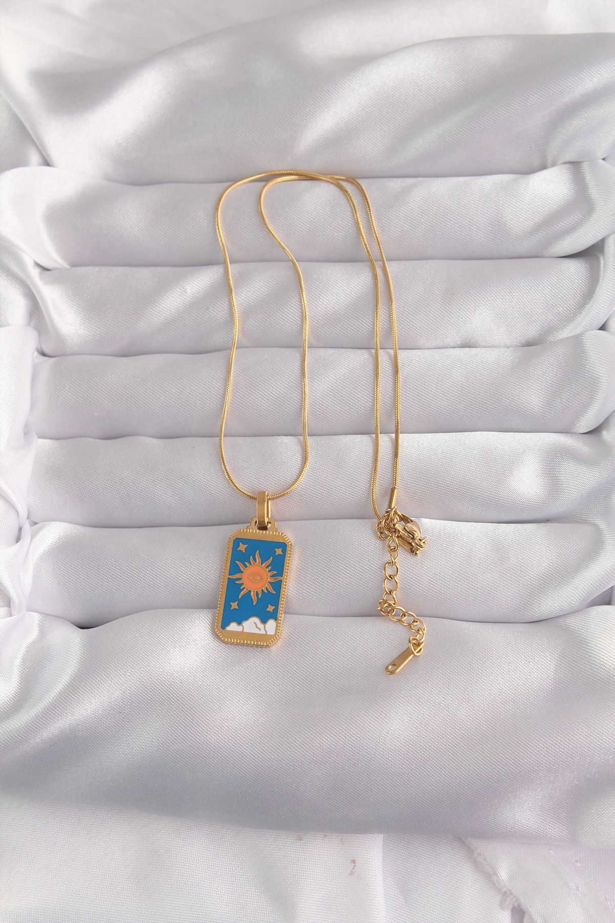 316L Çelik Gold Renk Mavi Mineli Güneş Model Tarot Kolye - TJ-BKO9026