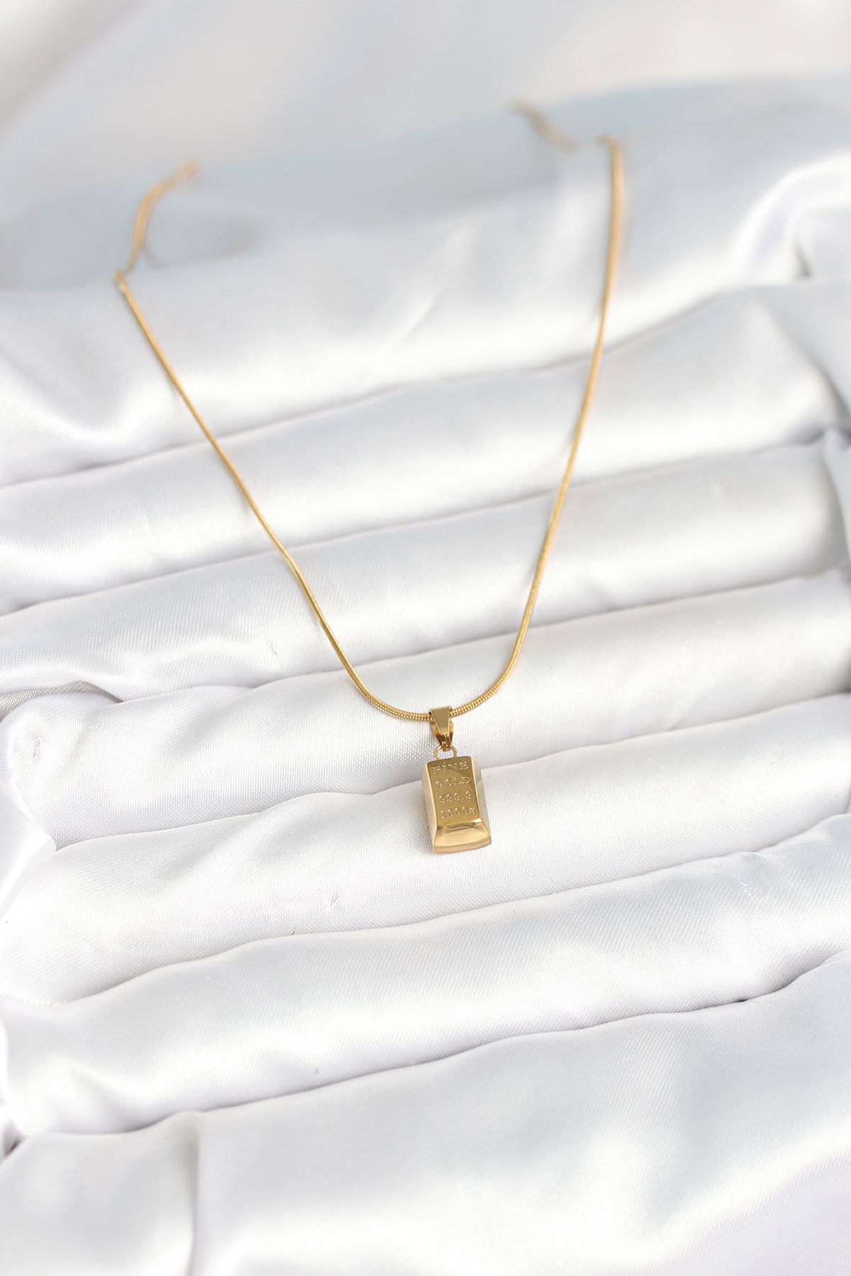 316L Çelik Gold Renk Mini Külçe Altın Model Kolye - TJ-BKO10603