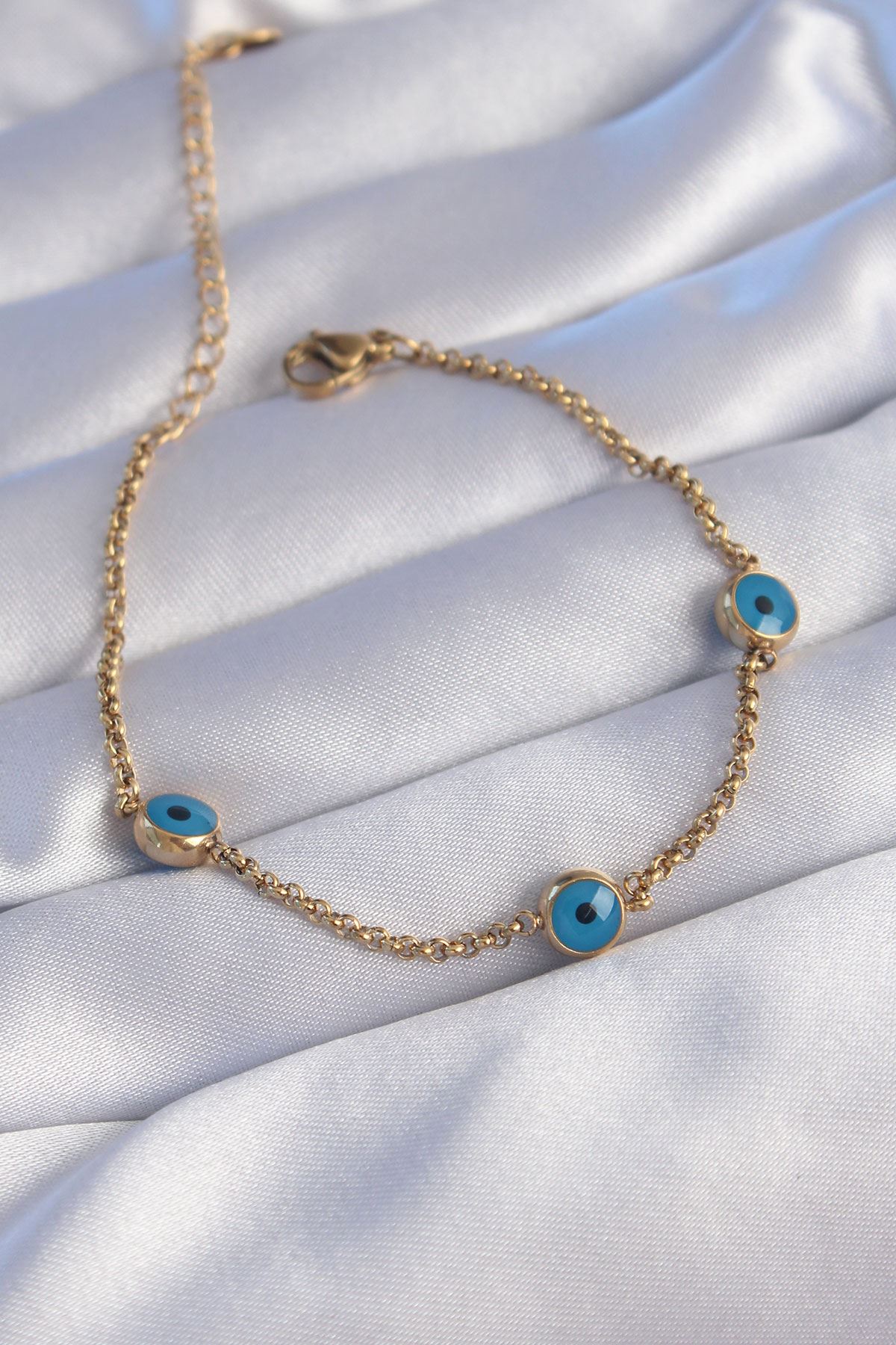 316L Çelik Gold Renk Nazar Boncuk Tasarımlı Bileklik - TJ-BB6100