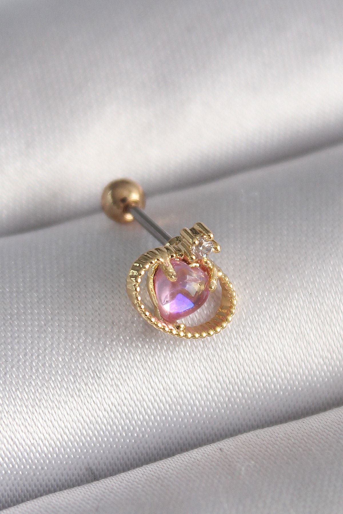 316L Çelik Gold Renk Pembe Mineli Kalp Zirkon Taş Detay Tragus Piercing - TJ-PR1272