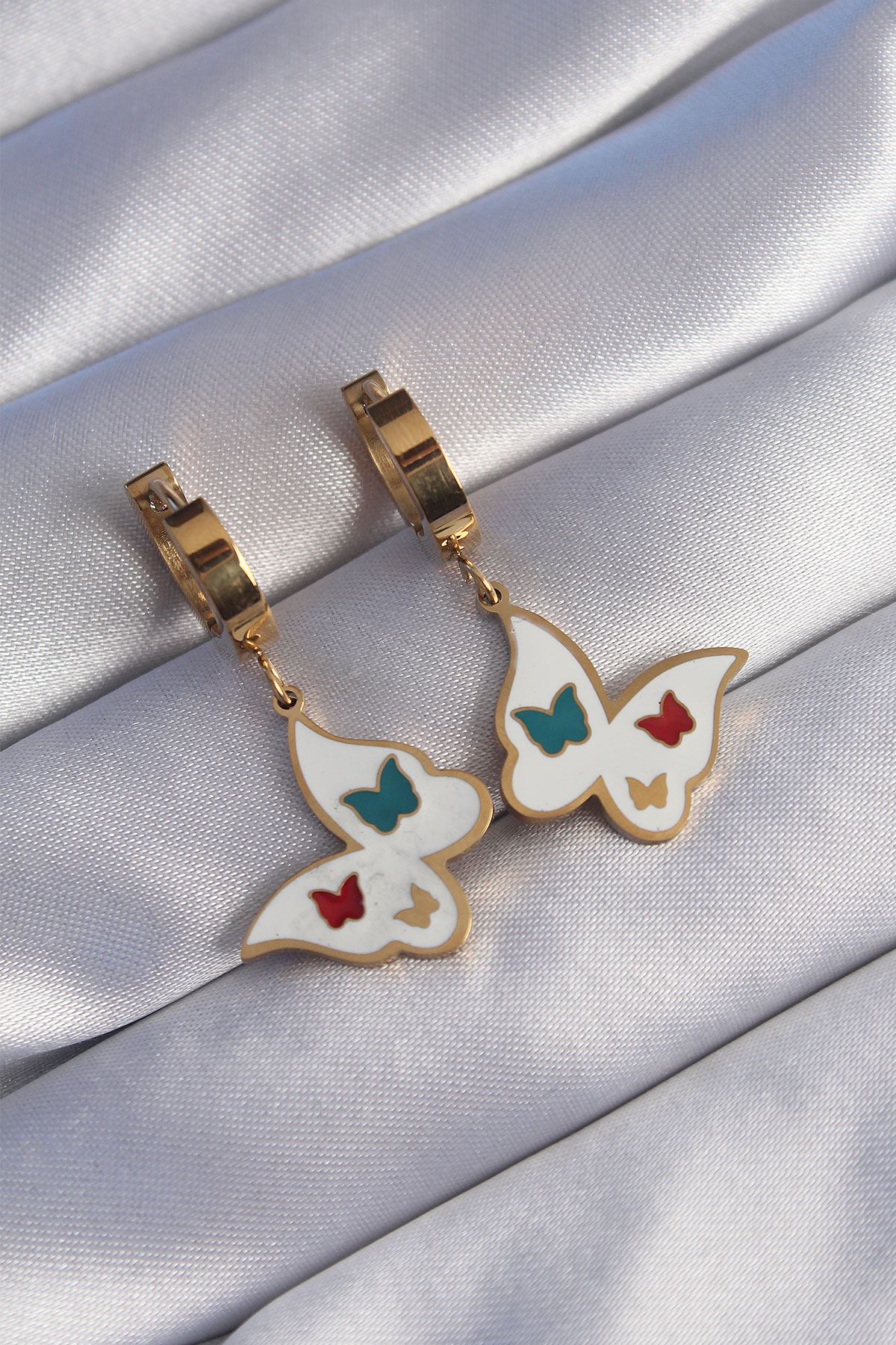 316L Çelik Gold Renk Renkli Mineli Kelebek Küpe - TJ-BKP9027