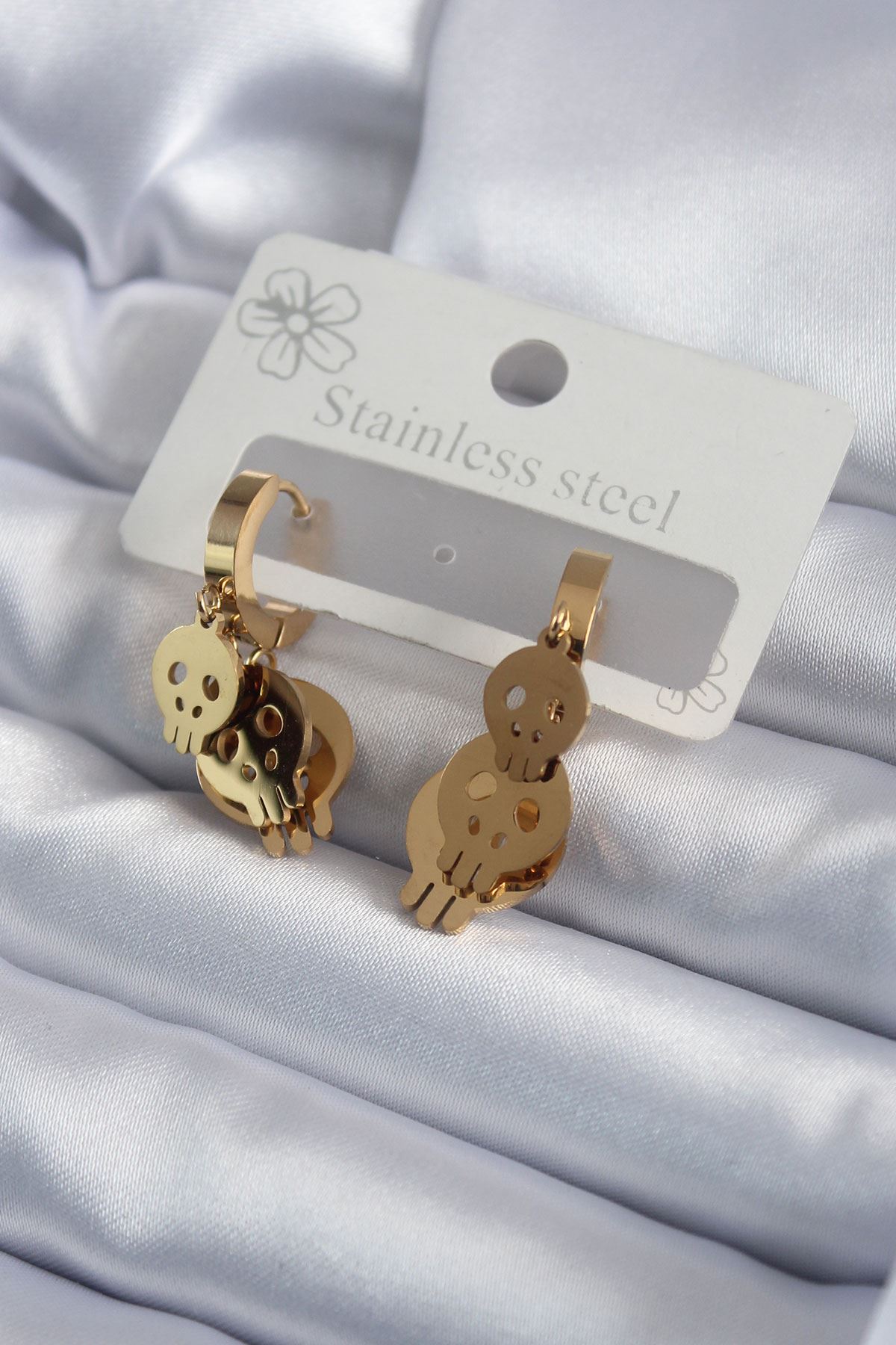 316L Çelik Gold Renk Sallantı Kuru Kafa Model Kadın Küpe - TJ-BKP7974