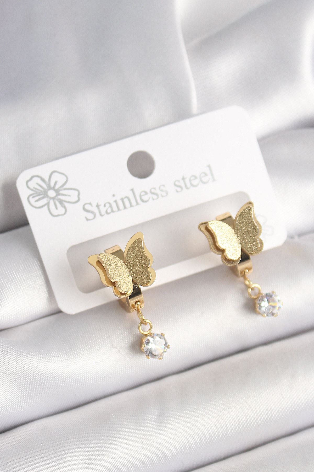 Şıklığı Ve Zarafeti Bir Araya Getiren Bu Altın Renkli Kelebek Model Küpe, Özel Tasarımıyla Göz Alıcı Bir Aksesuar Sunuyor.316l Çelik Malzemesiyle Uzun Ömürlü Kullanım Ve Alerjik Reaksiyon Riski Olmadan Güvenle Takabilirsiniz.