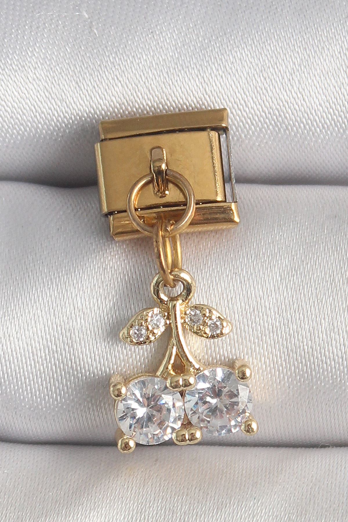 316L Çelik Gold Renk Sallantı Zirkon Taşlı Kiraz Model Nomination Charm - TJ-BC1356