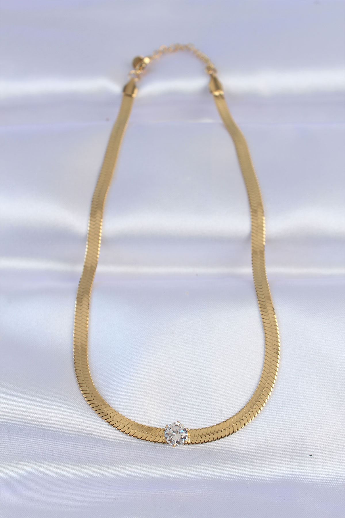 316L Çelik Gold Renk Tek Zirkon Taşlı İtalyan Zincir Kolye - TJ-BKO8747