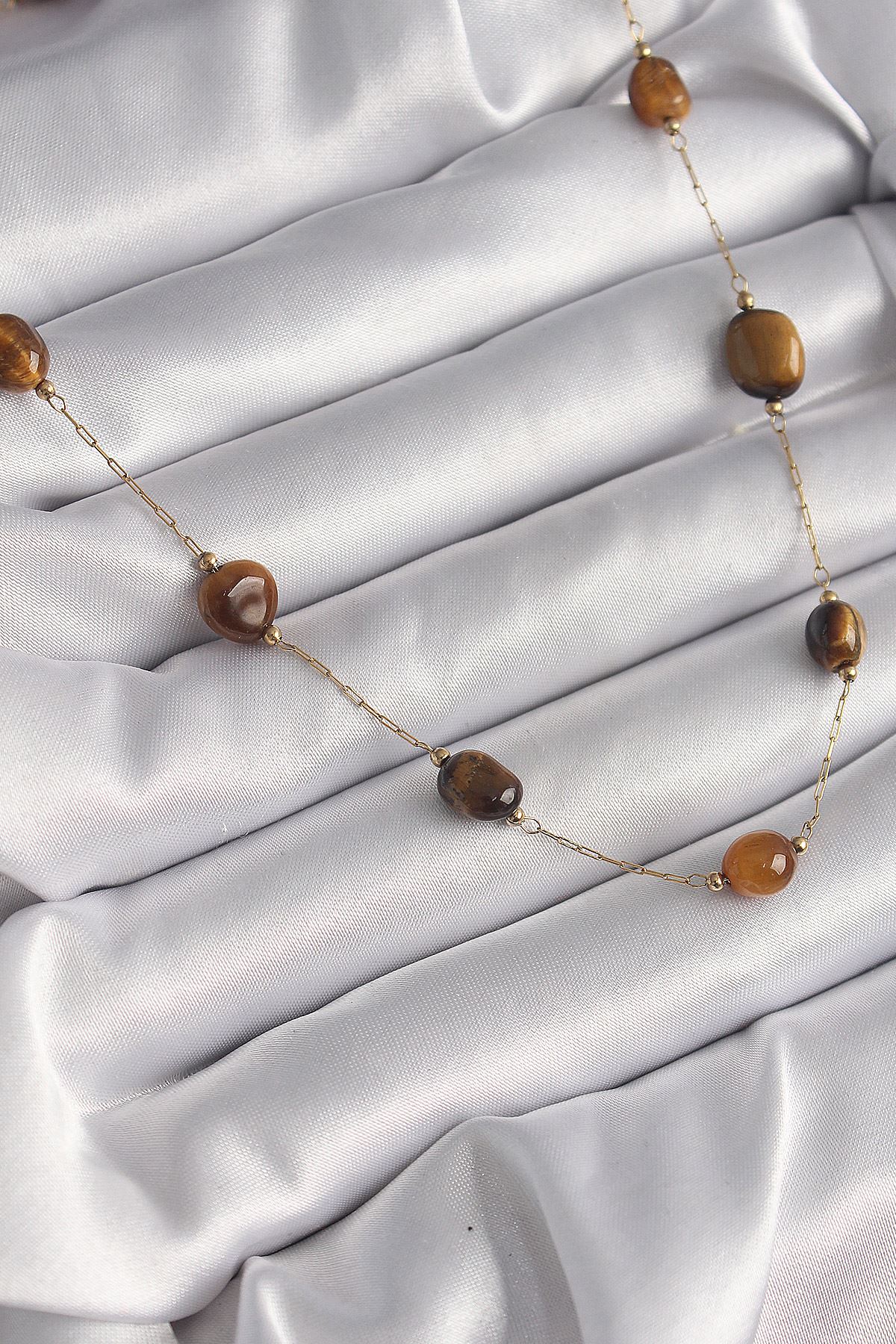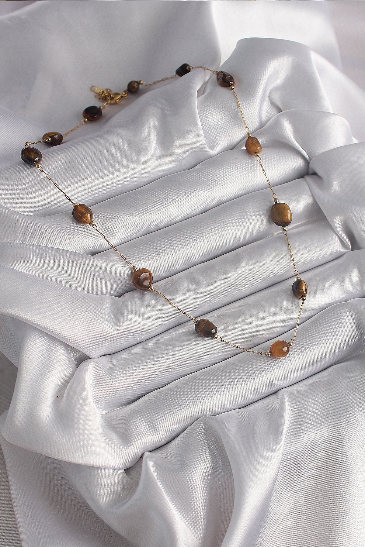 316L Çelik Gold Renk Zincir Kahvrengi Doğaltaş Model Kadın Kolye - TJ-BKO9661