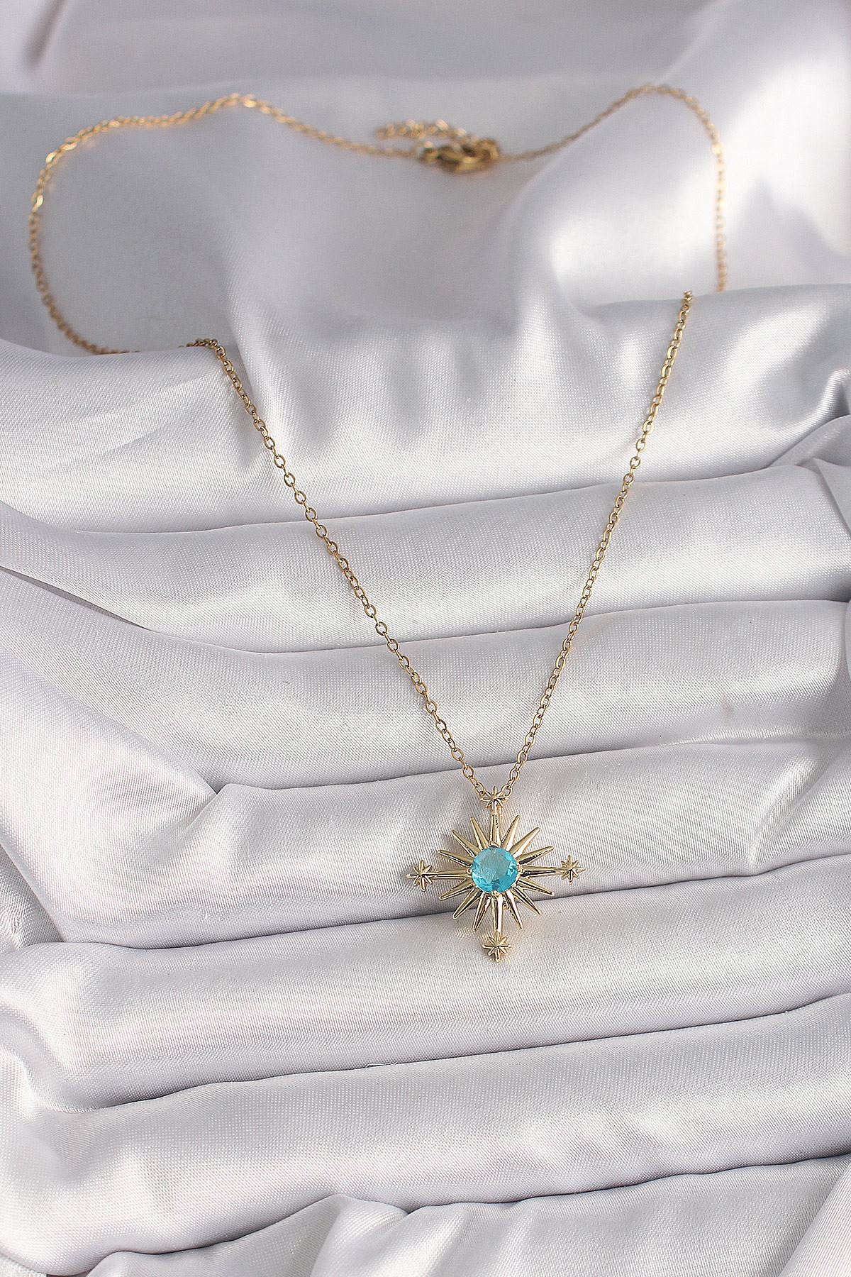 316L Çelik Gold Renk Zincir Mavi Taş Detaylı Kuzey Yıldız Model Kadın Kolye - TJ-BKO9806