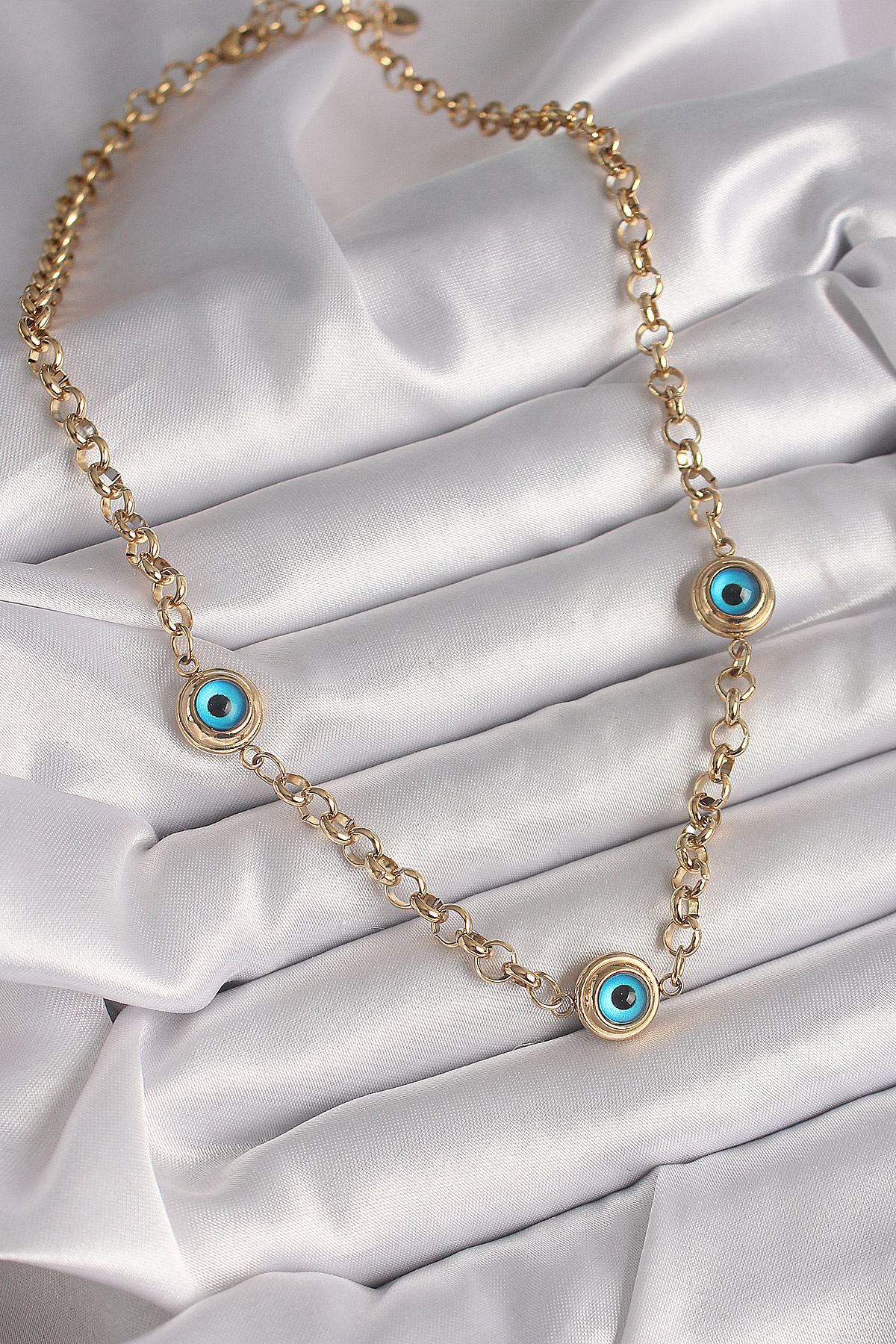 316L Çelik Gold Renk Zincir Nazar Boncuk Model Kadın Kolye - TJ-BKO9876