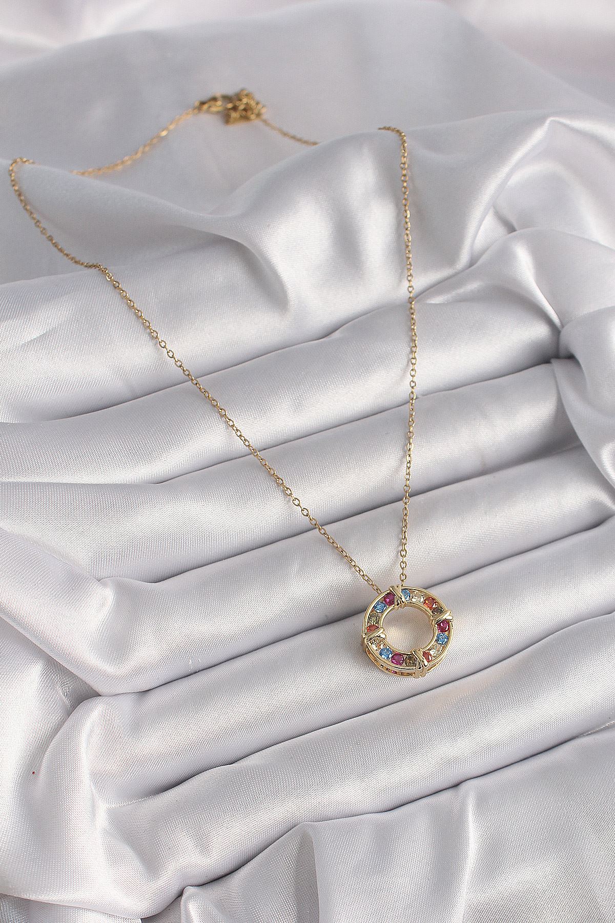 316L Çelik Gold Renk Zincir Renkli Zirkon Taşlı Xoxo Model Kadın Kolye - TJ-BKO9628