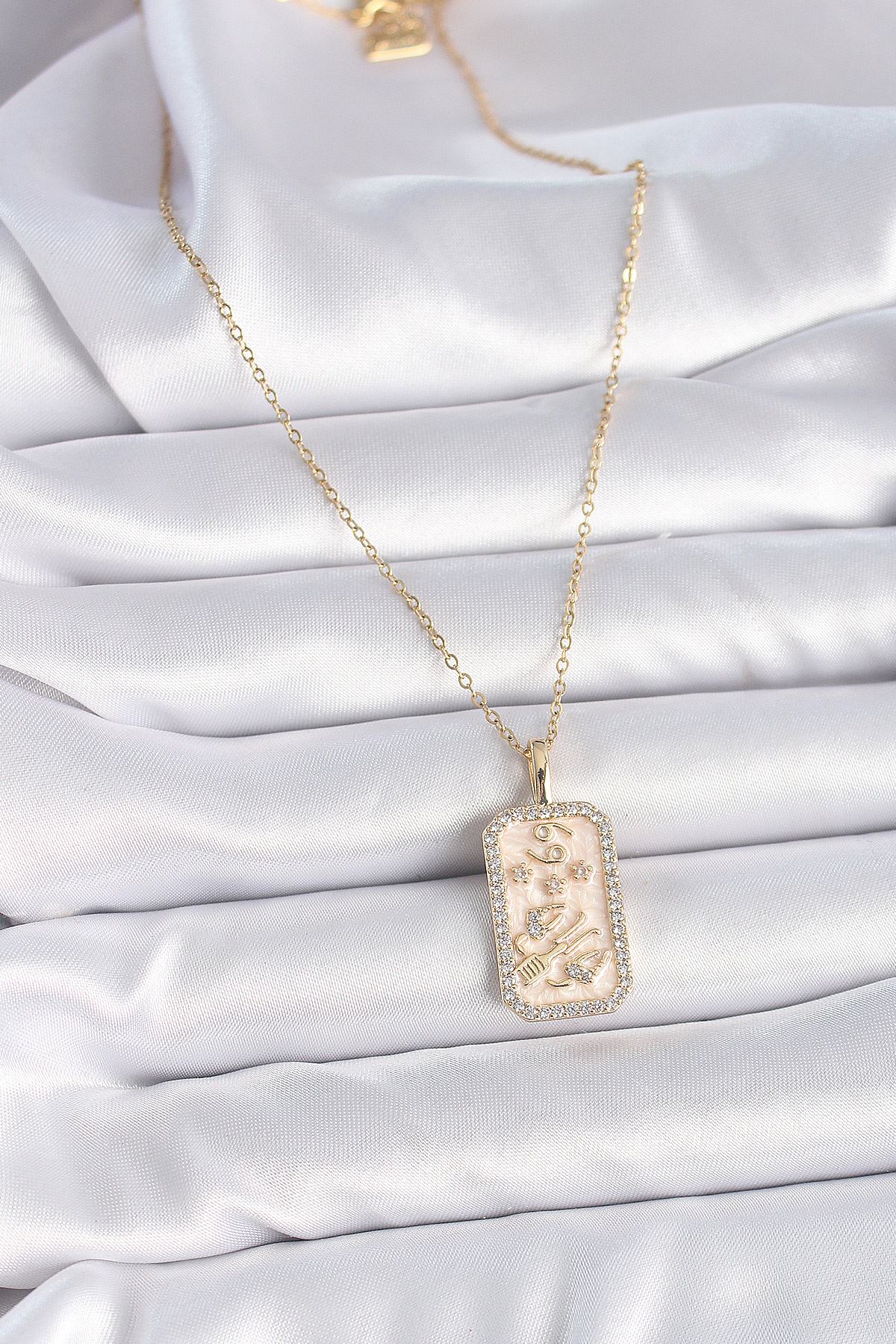 316L Çelik Gold Renk Zincir Yengeç Burcu Zirkon Taşlı Kadın Kolye - TJ-BKO9467