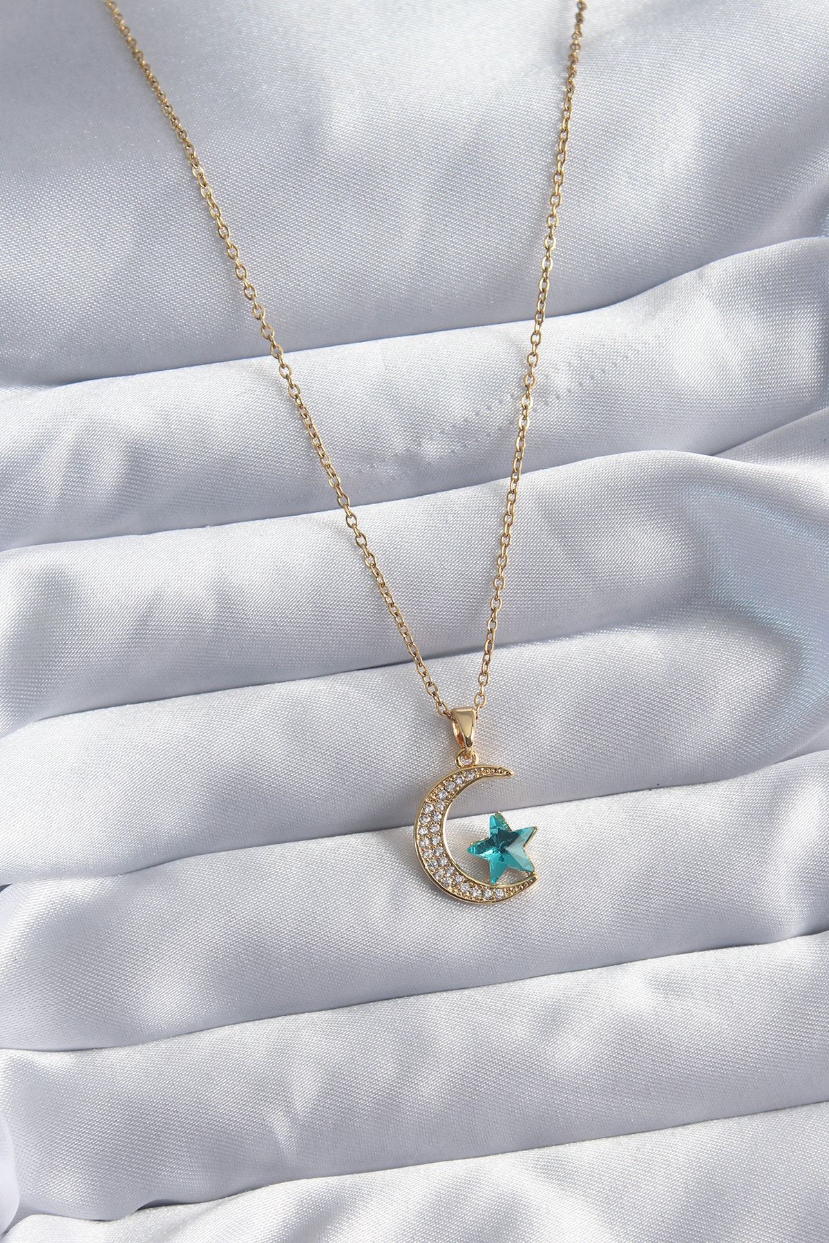 316L Çelik Gold Renk Zincir Zirkon Taş Detay Hilal Yıldızı Figür Kadın Kolye - TJ-BKO8029