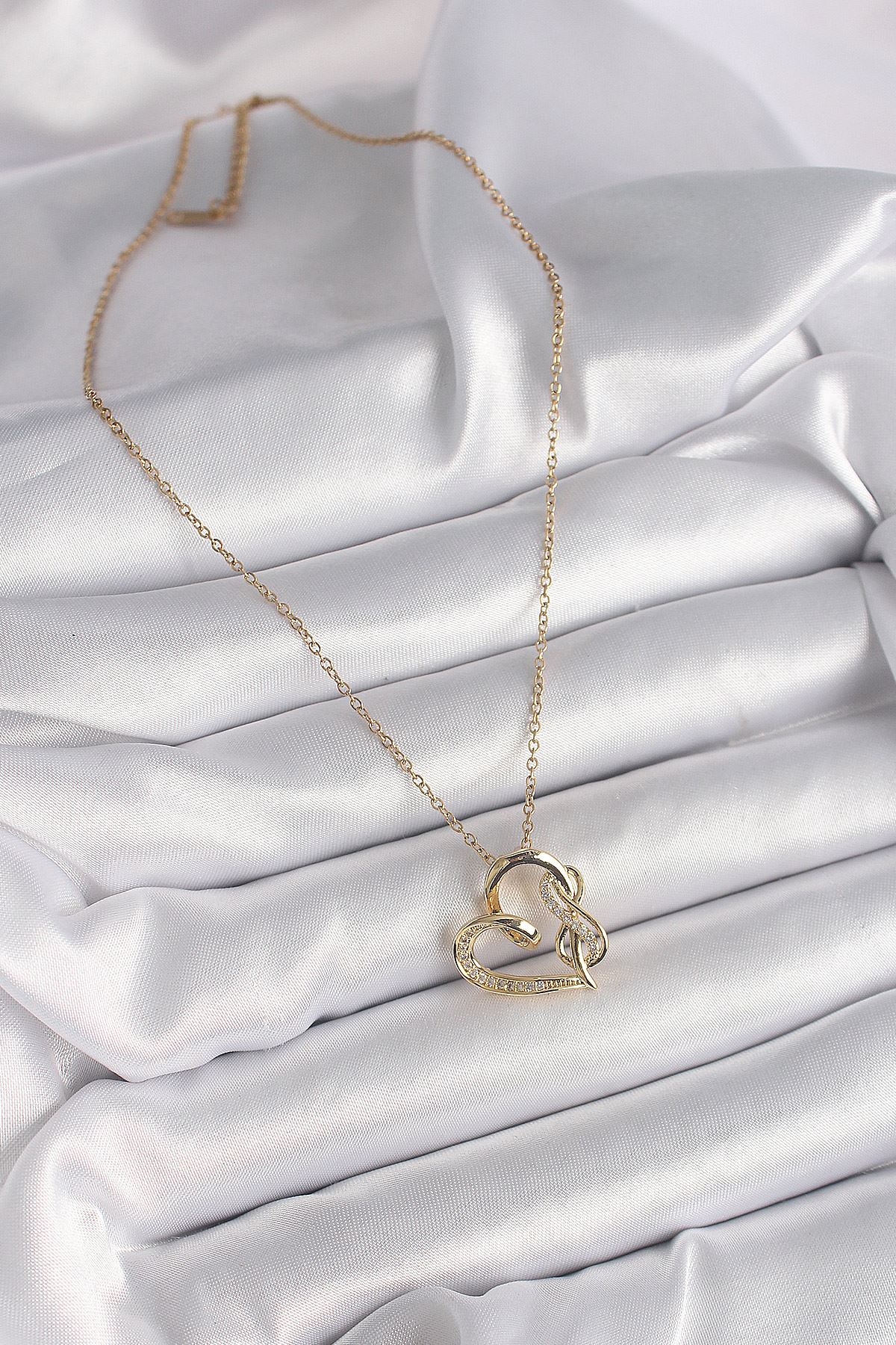 316L Çelik Gold Renk Zincir Zirkon Taş Detaylı Kalp Model Sonsuzluk Detay Kadın Kolye - TJ-BKO9583