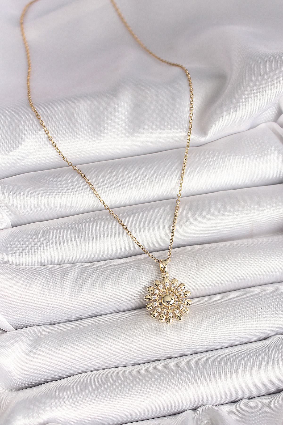 316L Çelik Gold Renk Zincir Zirkon Taşlı Güneş Model Kadın Kolye - TJ-BKO9966