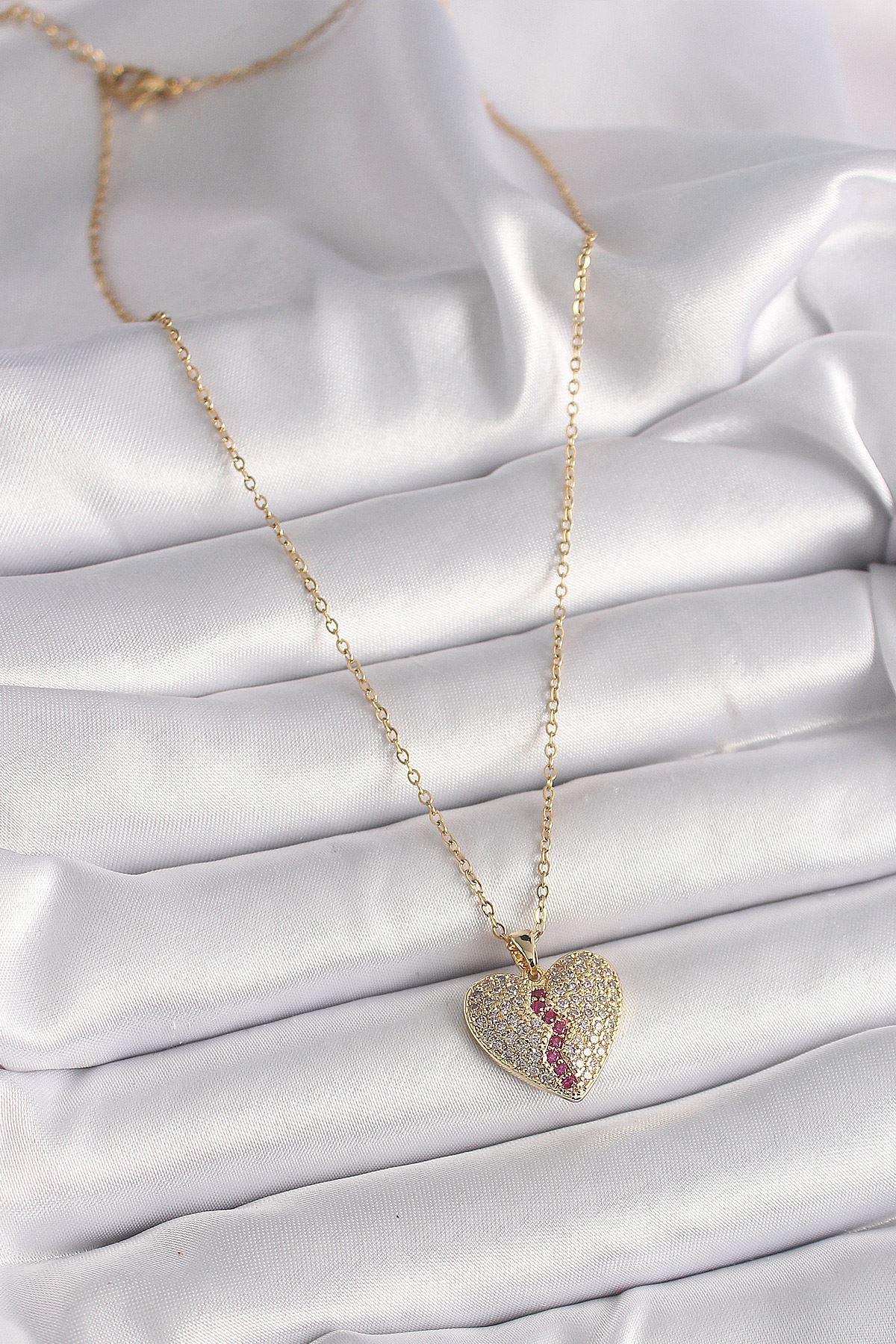 316L Çelik Gold Renk Zincir Zirkon Taşlı Kalp Model Kadın Kolye - TJ-BKO9644