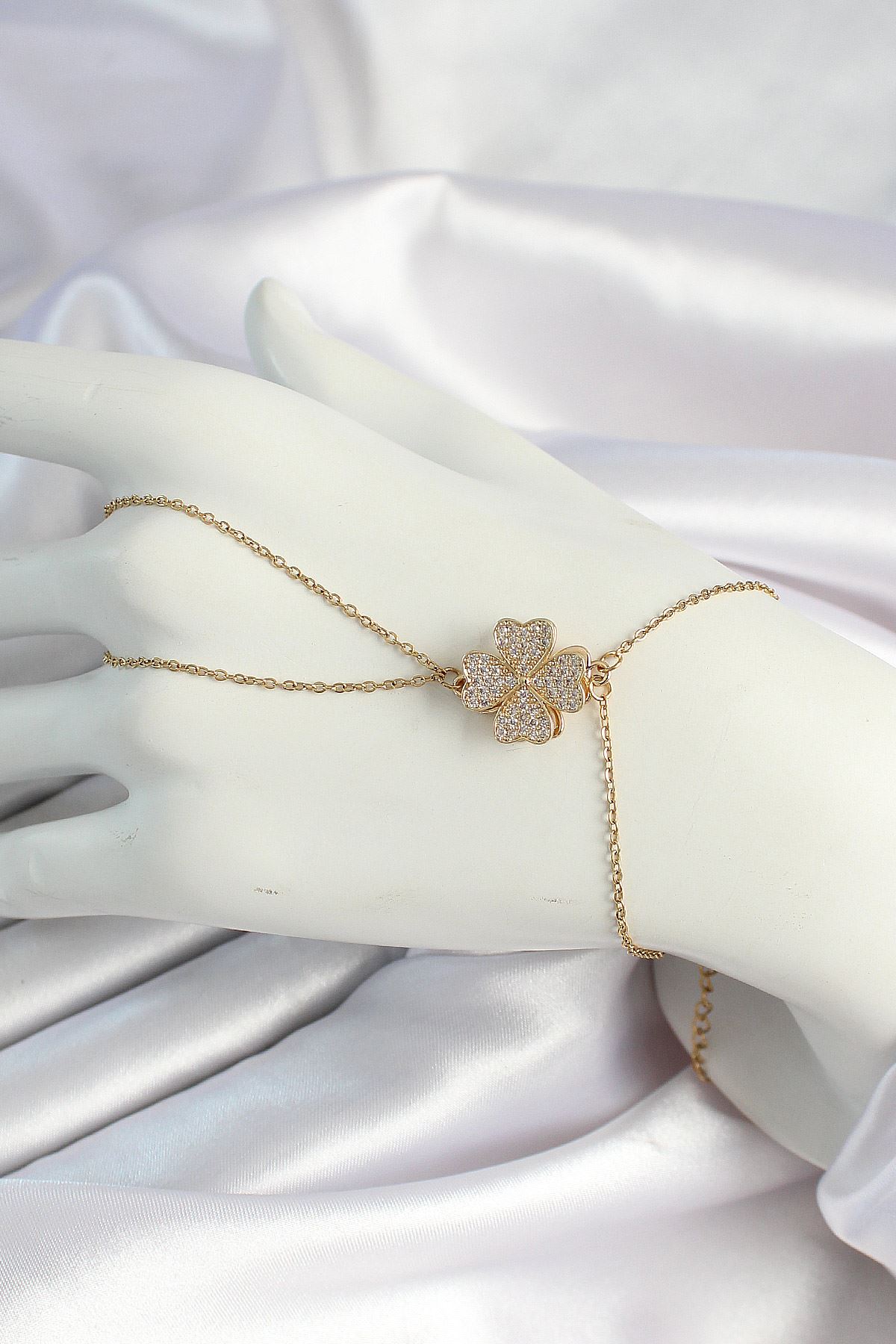 Pirinç Sıralı Pembe Kalp Figürlü Zirkon Taşlı Gold Renk Kadın Bileklik - TJ-BB6983