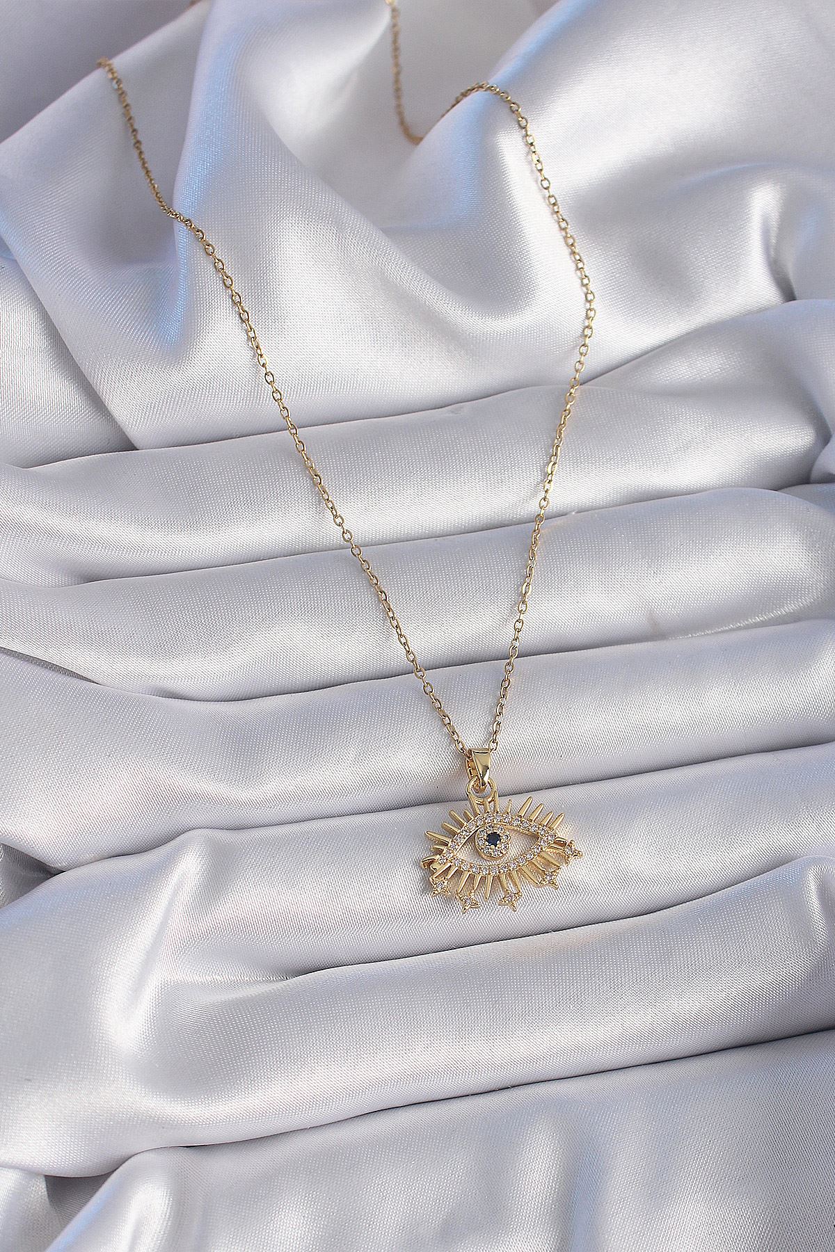 316L Çelik Gold Renk Zirkon Taşlı Göz Model Kadın Kolye - TJ-BKO9435