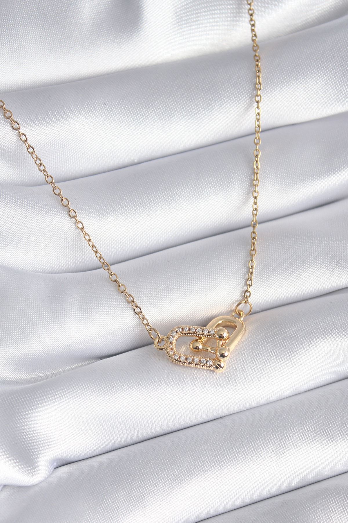 316L Çelik Gold Renk Zirkon Taşlı Tiffany Model Kadın Kolye - TJ-BKO8252