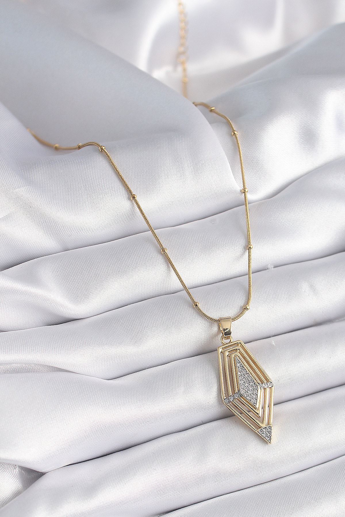 316L Çelik Gold Renk Zirkon Taşlı Vintage Model Kadın Kolye - TJ-BKO9517