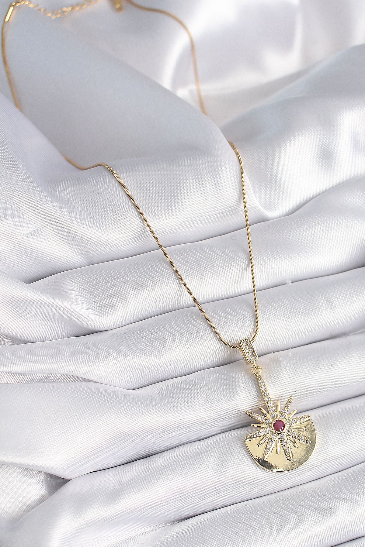 316L Çelik Gold Renk Zirkon Taşlı Yıldız Model Kadın Kolye - TJ-BKO9518