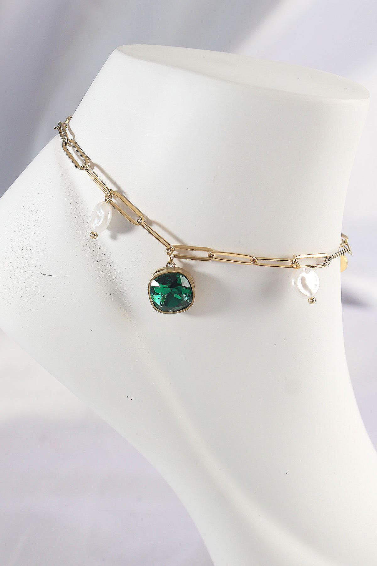 316L Çelik Gold Renk Zümrüt Taş Tasarımlı Halhal - TJ-HH1592