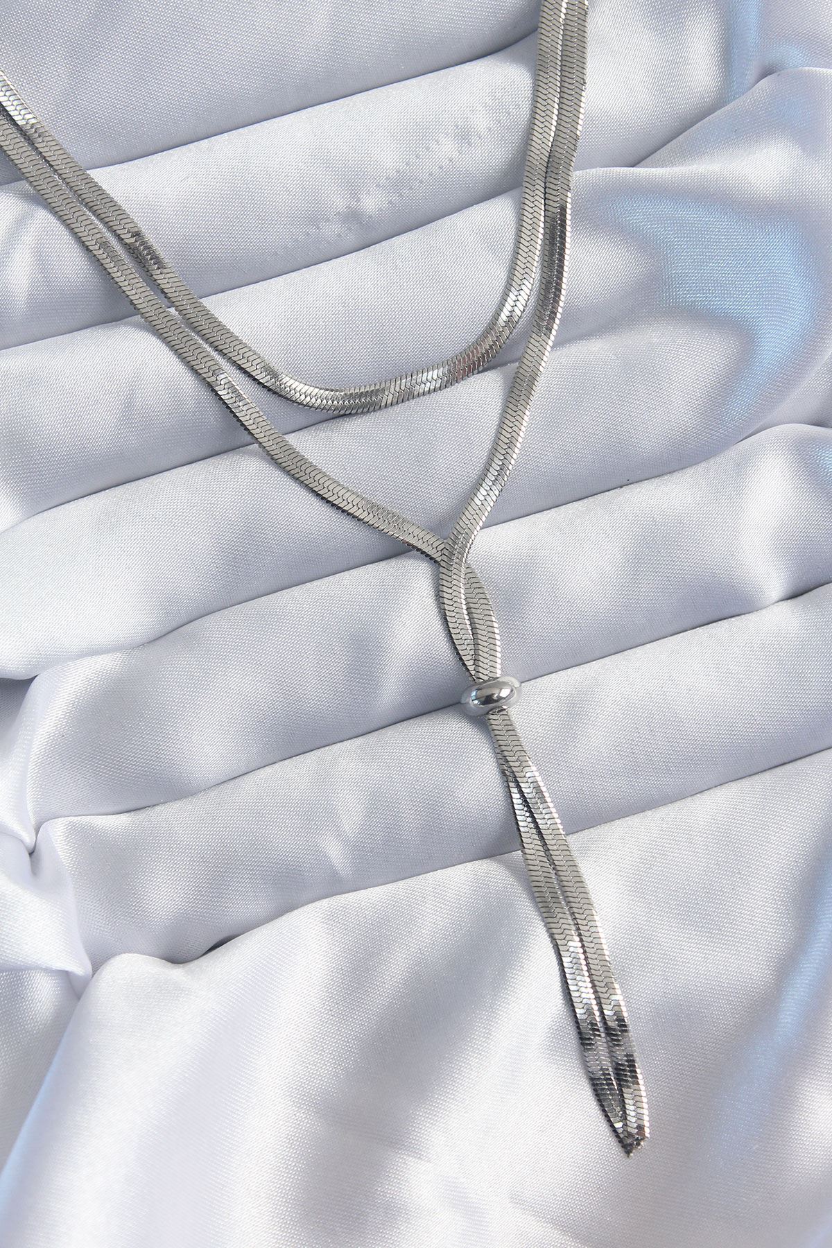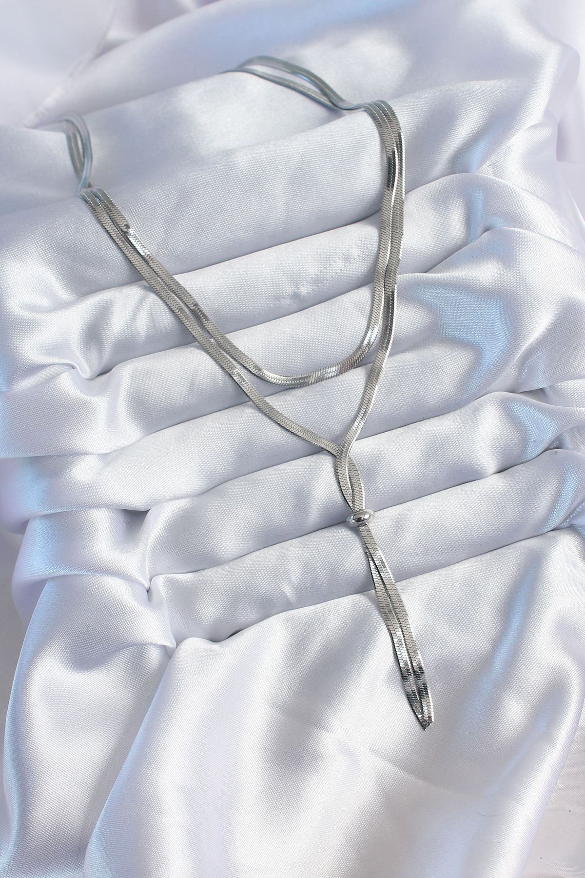 316L Çelik Gümüş Renk 2'li İtalyan Zincir Asansör Model Kadın Kolye - TJ-BKO8026