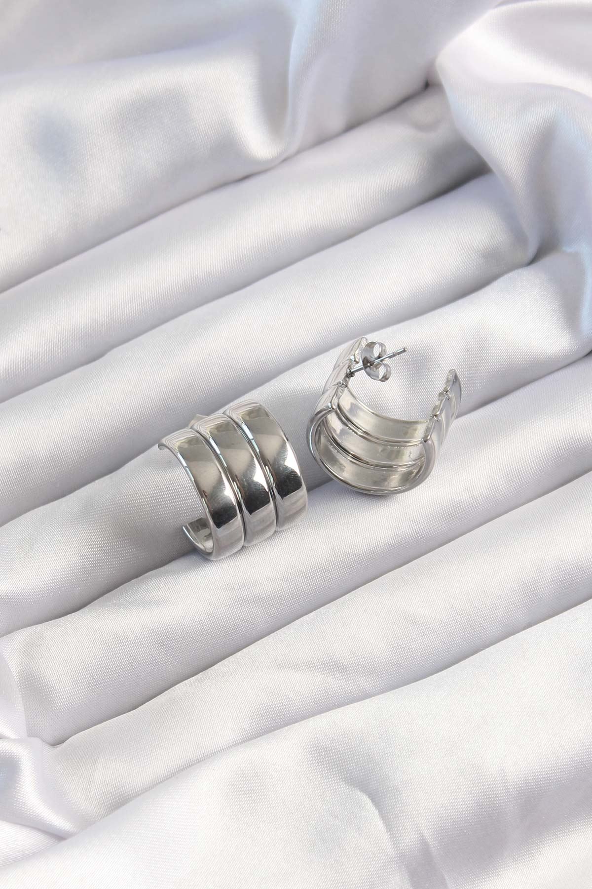 316L Çelik Gümüş Renk 3lü Görünüm Bombe Model Yarım Halka Küpe - TJ-BKP9490