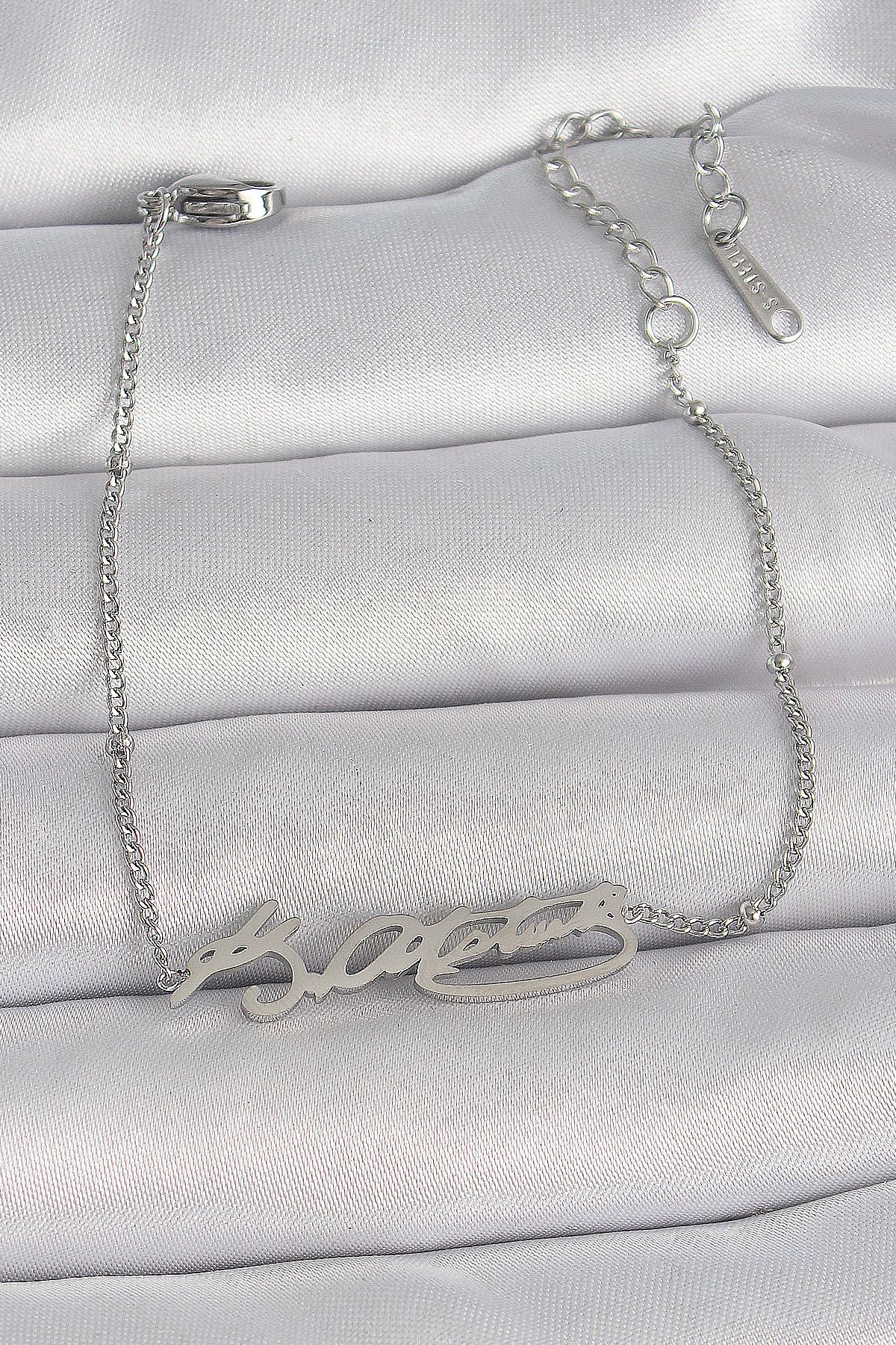 316L Çelik Gümüş Renk Atatürk İmza Model Kadın Bileklik - TJ-BB6660