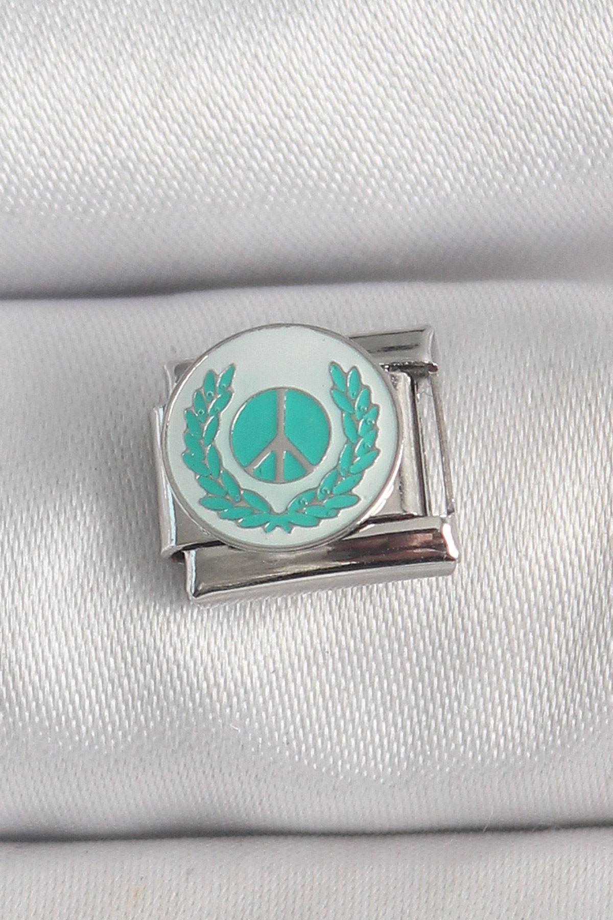 316L Çelik Gümüş Renk Beyaz Mavi Barış İşareti İşlemeli Nomination Charm - TJ-BC1392