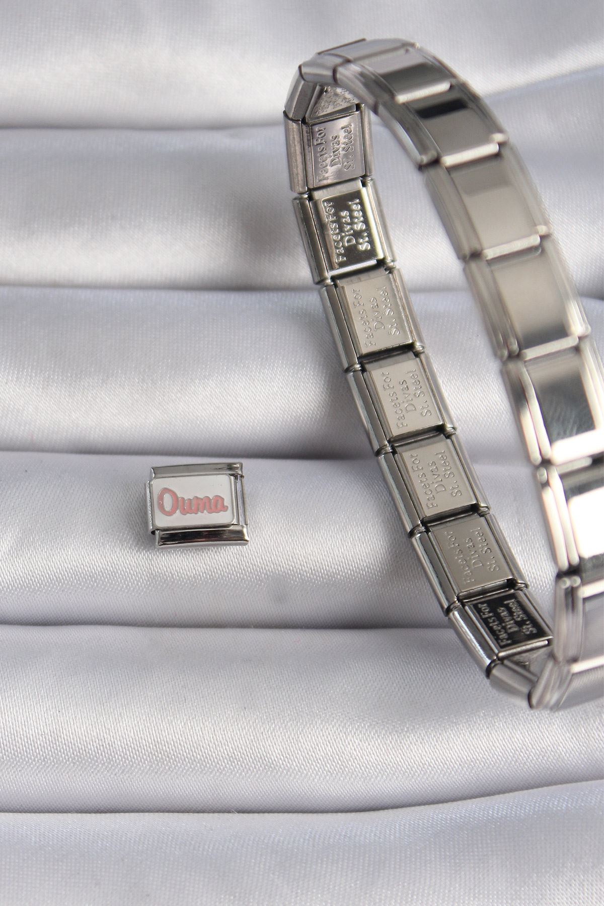 316L Çelik Gümüş Renk Beyaz Pembe Ouma İşlemeli Nomination Charm - TJ-BC1027