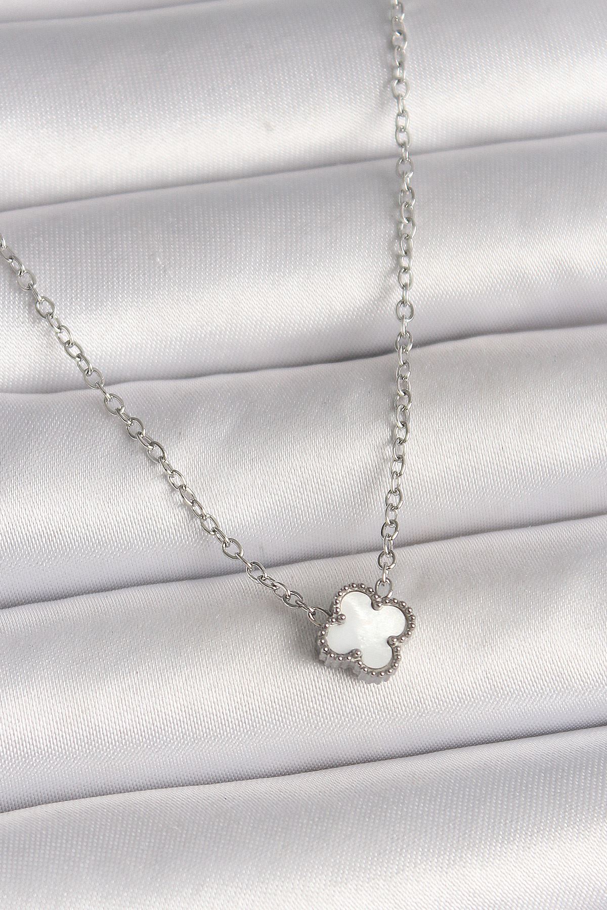 316L Çelik Gümüş Renk Beyaz Yonca Model Kadın Kolye - TJ-BKO10020