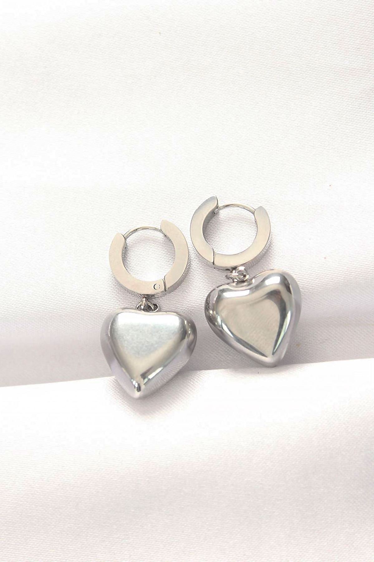 316L Çelik Gümüş Renk Bombeli Kalp Tasarımlı Küpe - TJ-BKP8903