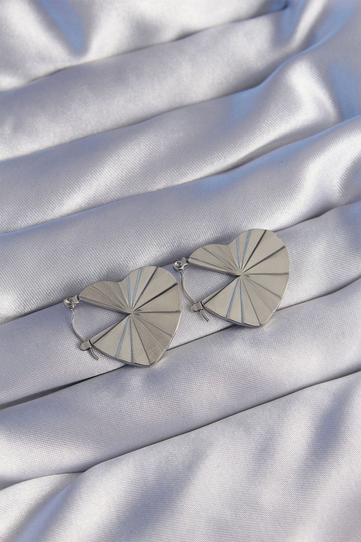 316L Çelik Gümüş Renk Çizgili Plaka Tasarımlı Kalp Küpe - TJ-BKP9041