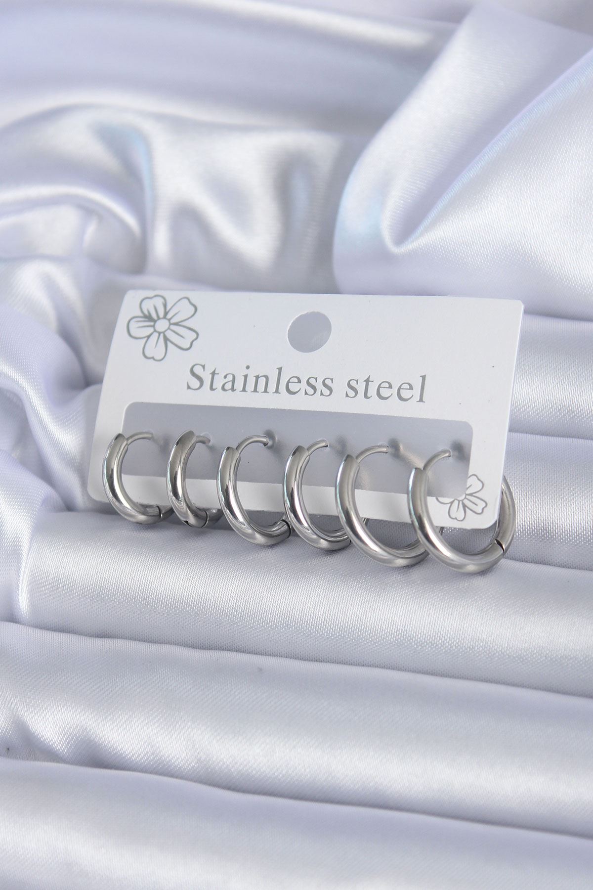 316L Çelik Gümüş Renk Halka Kadın Küpe Seti - TJ-BKP7885