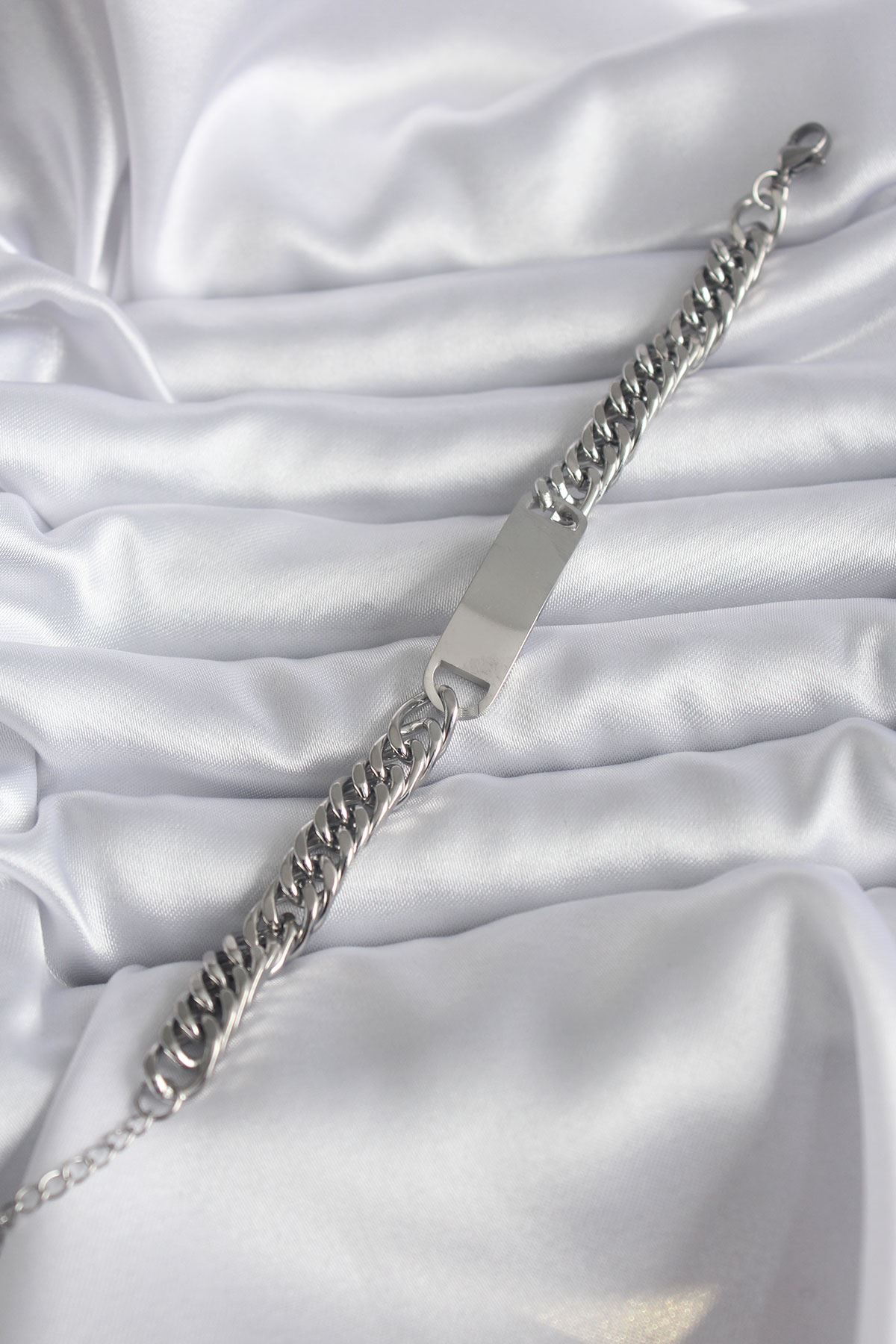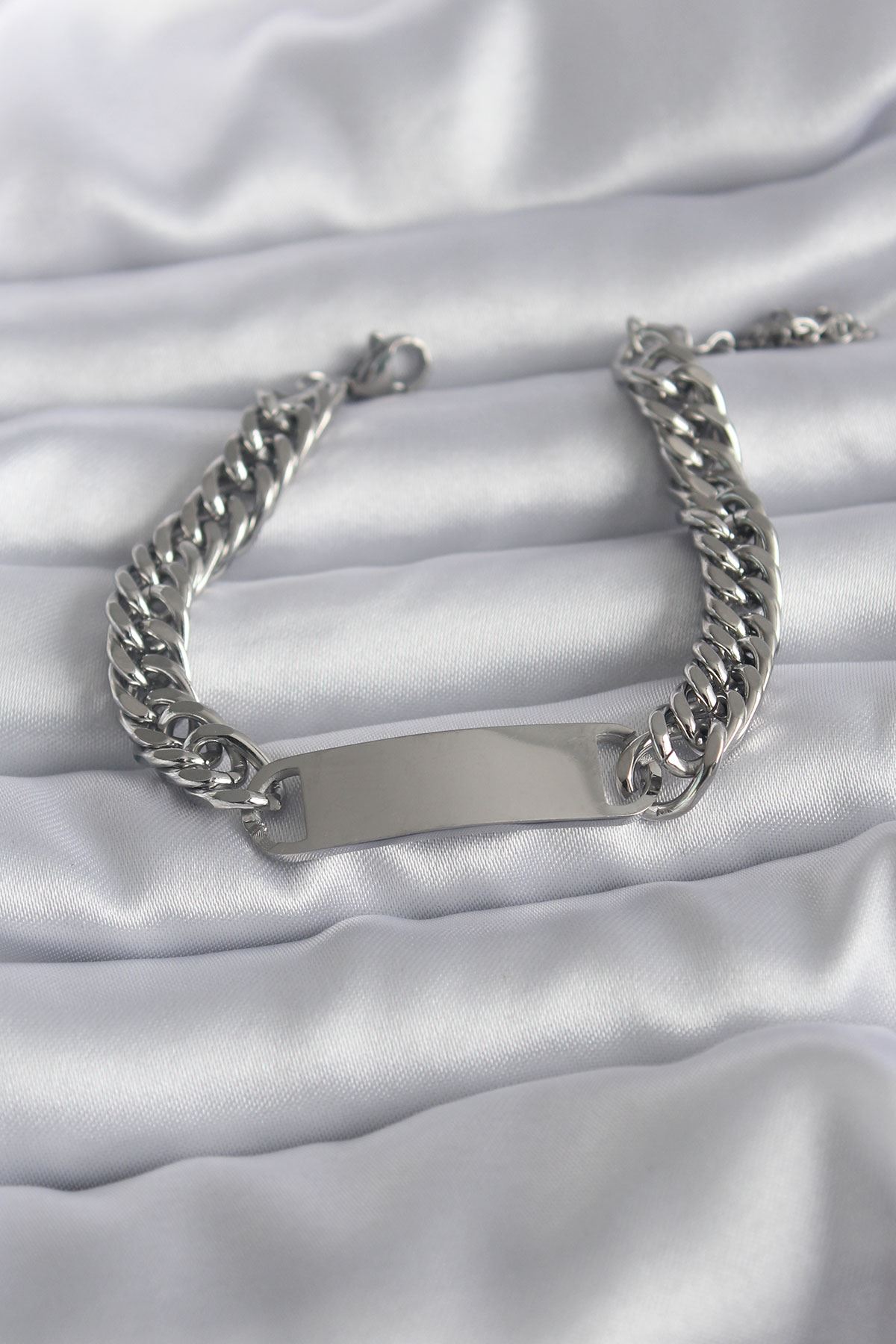 316L Çelik Gümüş Renk İsim Yazılabilir Plaka Model Kadın Bileklik - TJ-BB5743